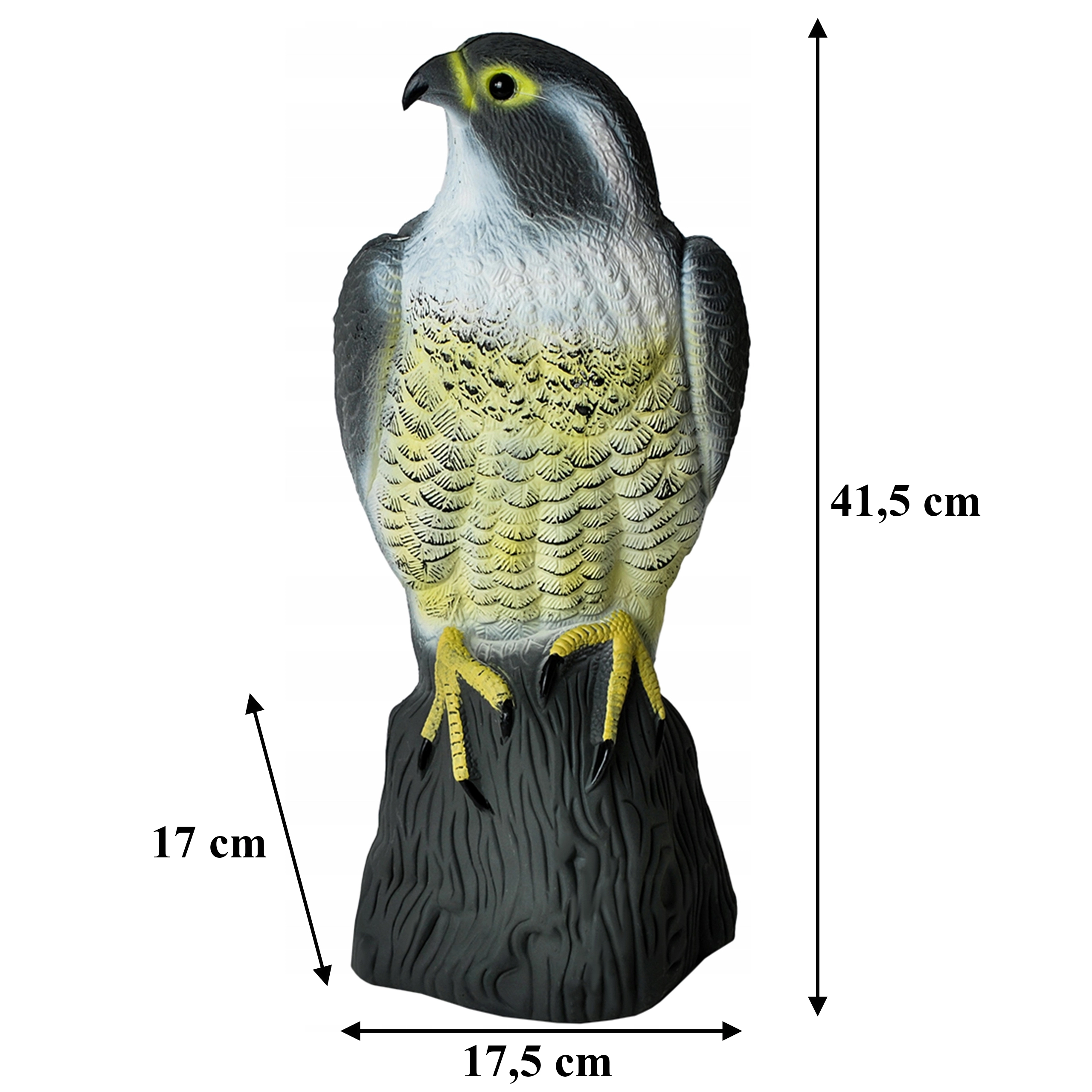 Bescherm uw oogst, vensterbanken en leuningen tegen vervuiling en schade veroorzaakt door vogels. Deze realistische valksimulator maakt gebruik van de natuurlijke angst van kleinere vogels voor roofvogels en werkt daarom als een effectieve verjager zonder chemicaliën en zonder geluid. Natuurgetrouwe proporties, gedetailleerde veren en contrasterende kleuren verhogen de overtuigingskracht in zowel stedelijke als natuurlijke omgevingen.