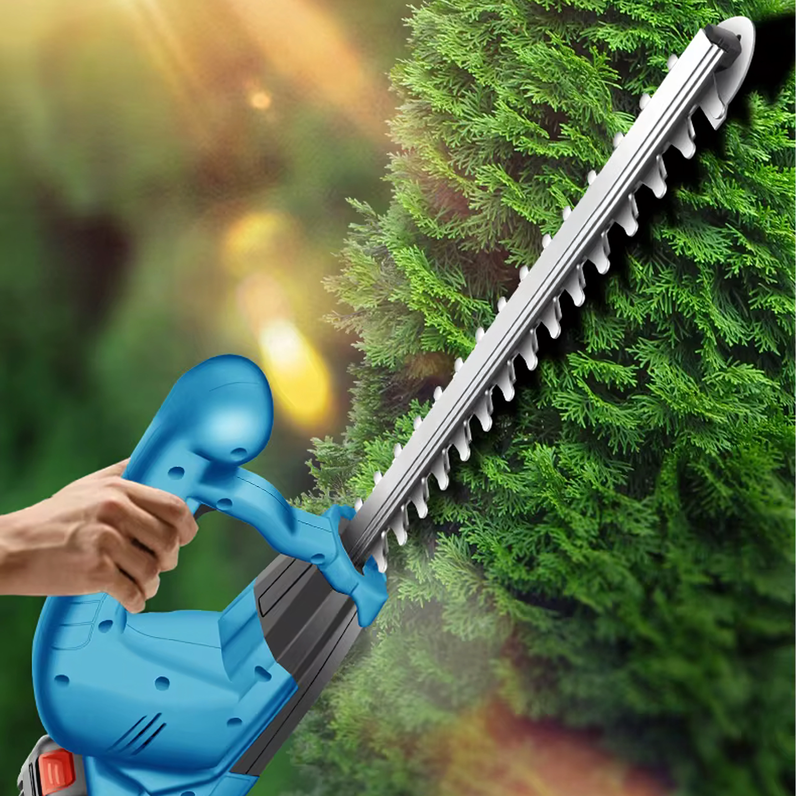 Deze accu-heggenschaar is ideaal voor regelmatig tuinonderhoud. De lange, dubbelzijdige balk met scherpe tanden zorgt voor een schone en gelijkmatige snede van takken en bladeren, terwijl de ergonomische handgreep en de voorste beschermer de controle en veiligheid tijdens het werk verhogen. Zonder kabel heeft u volledige bewegingsvrijheid door de hele tuin.