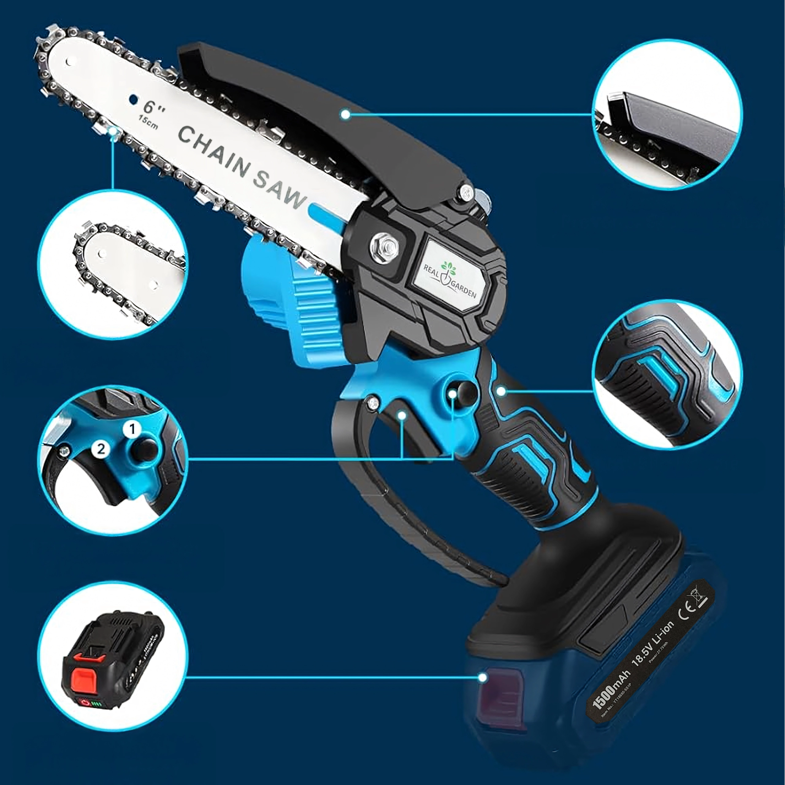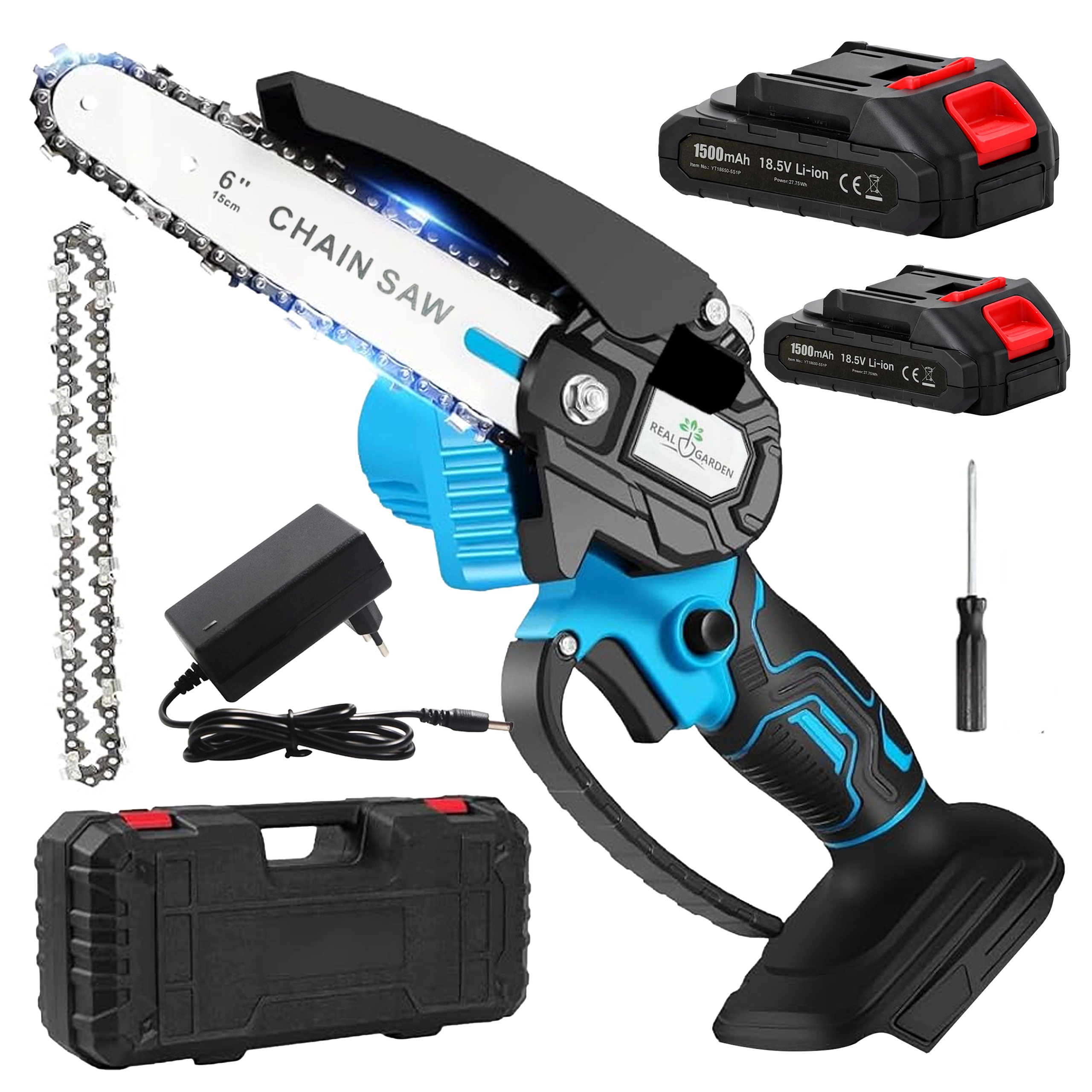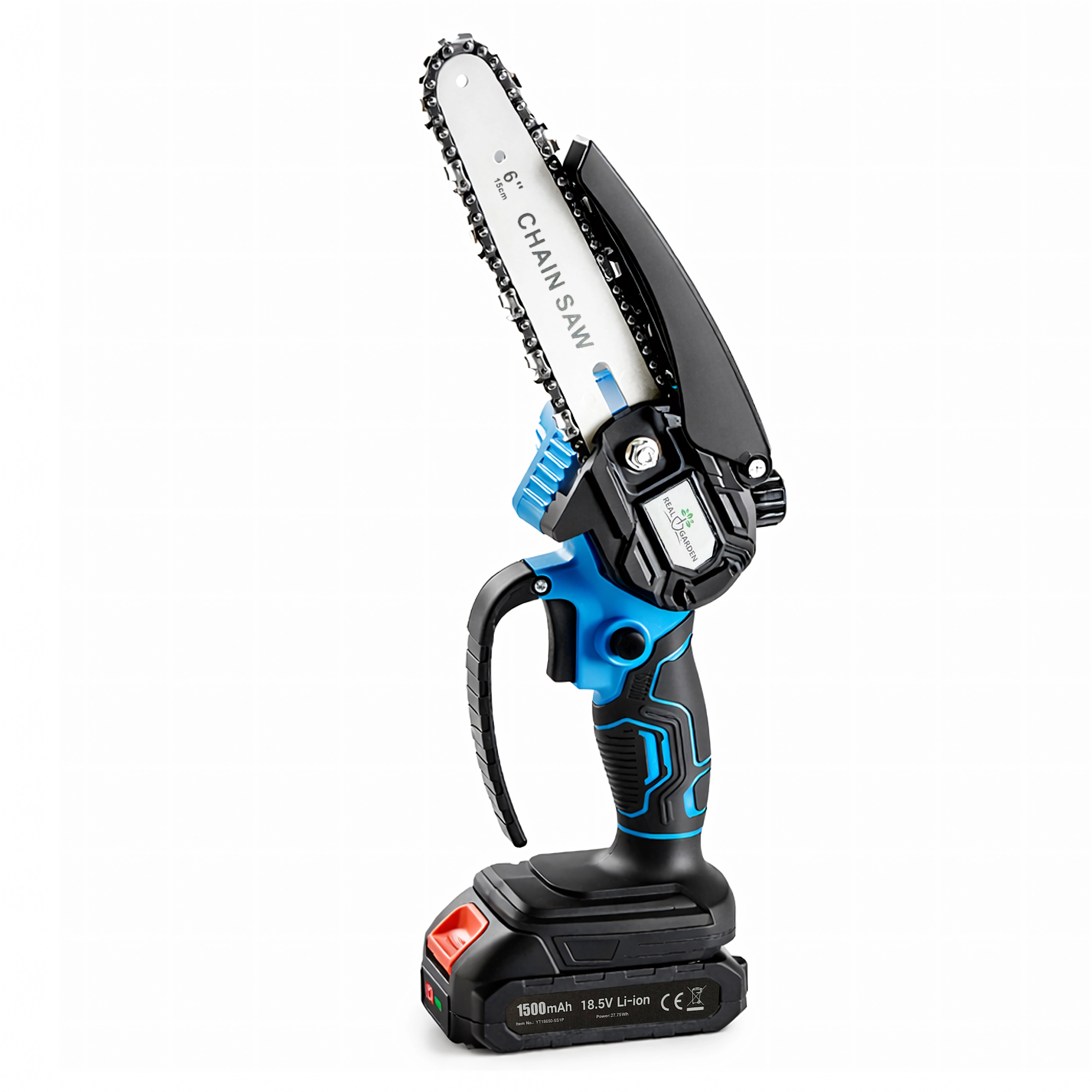 Een 6" geleider met een scherpe ketting zaagt takken en kleinere blokken snel en schoon – ideaal voor tuinonderhoud zonder onnodige inspanning.