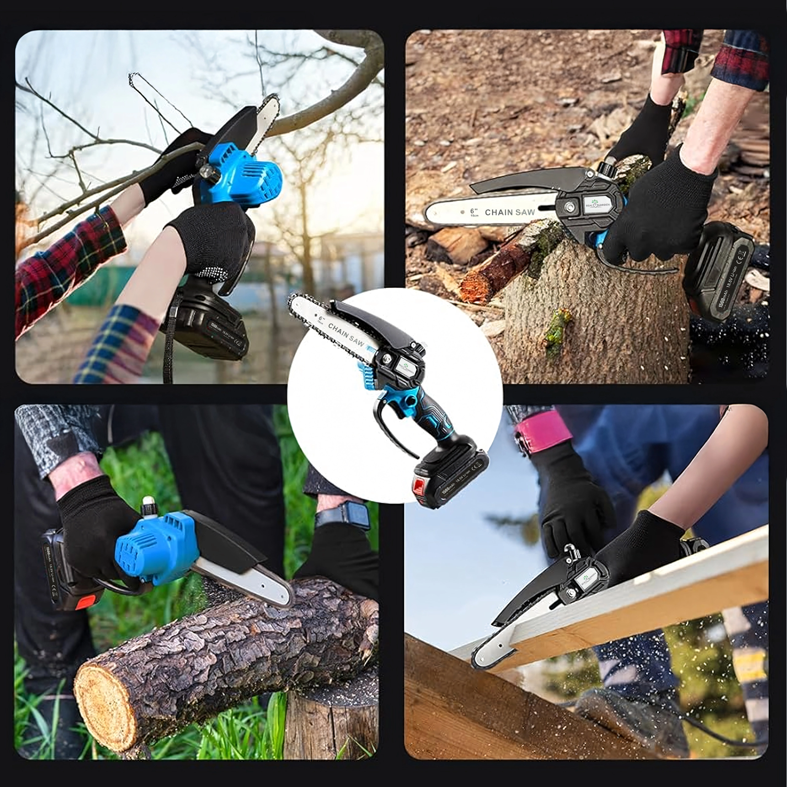 Accu mini kettingzaag voor hout en takken
