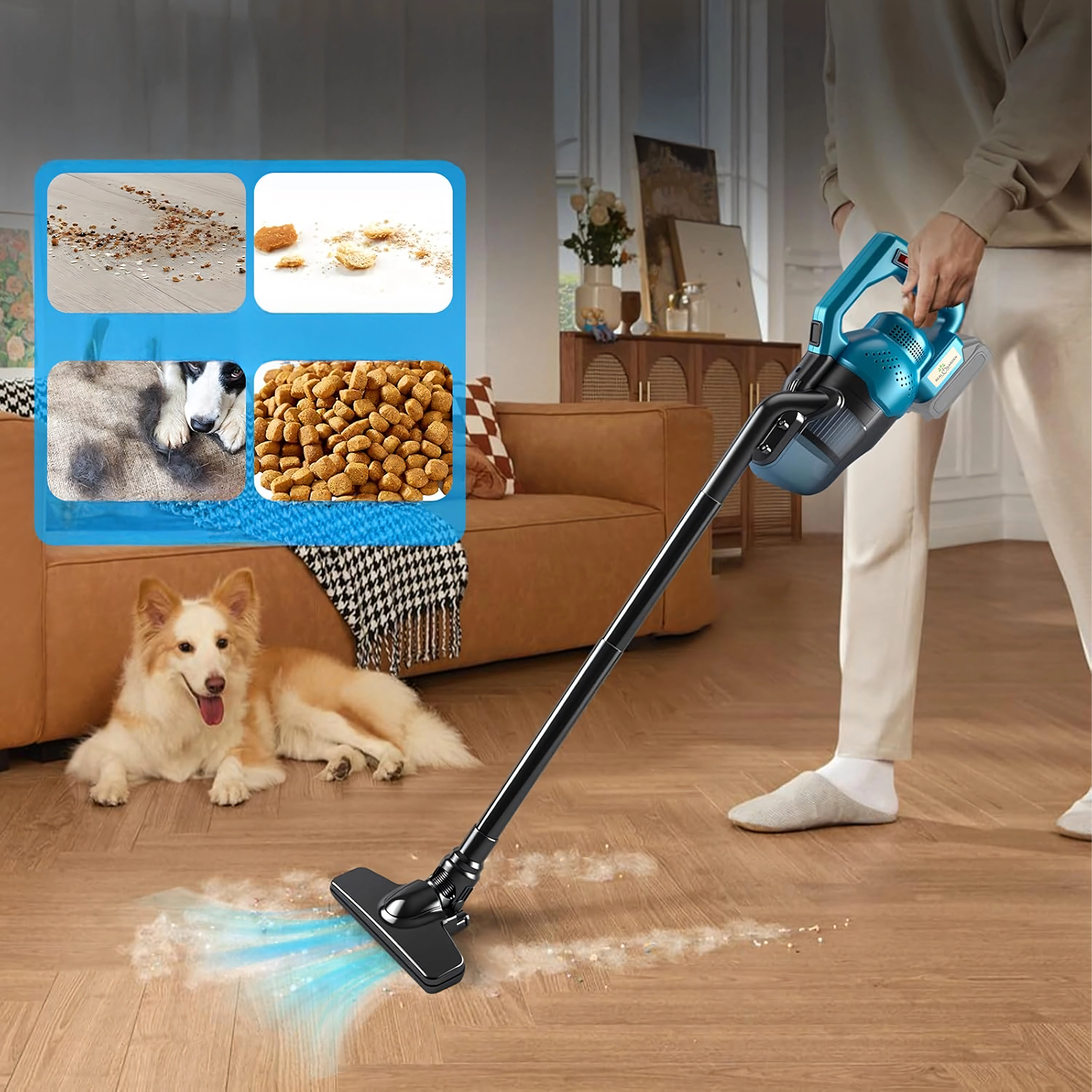 Drie lengtes en snelle omzetting naar handstofzuiger maken het mogelijk om vloeren, werkbladen en het interieur van de auto te stofzuigen zonder kabel.