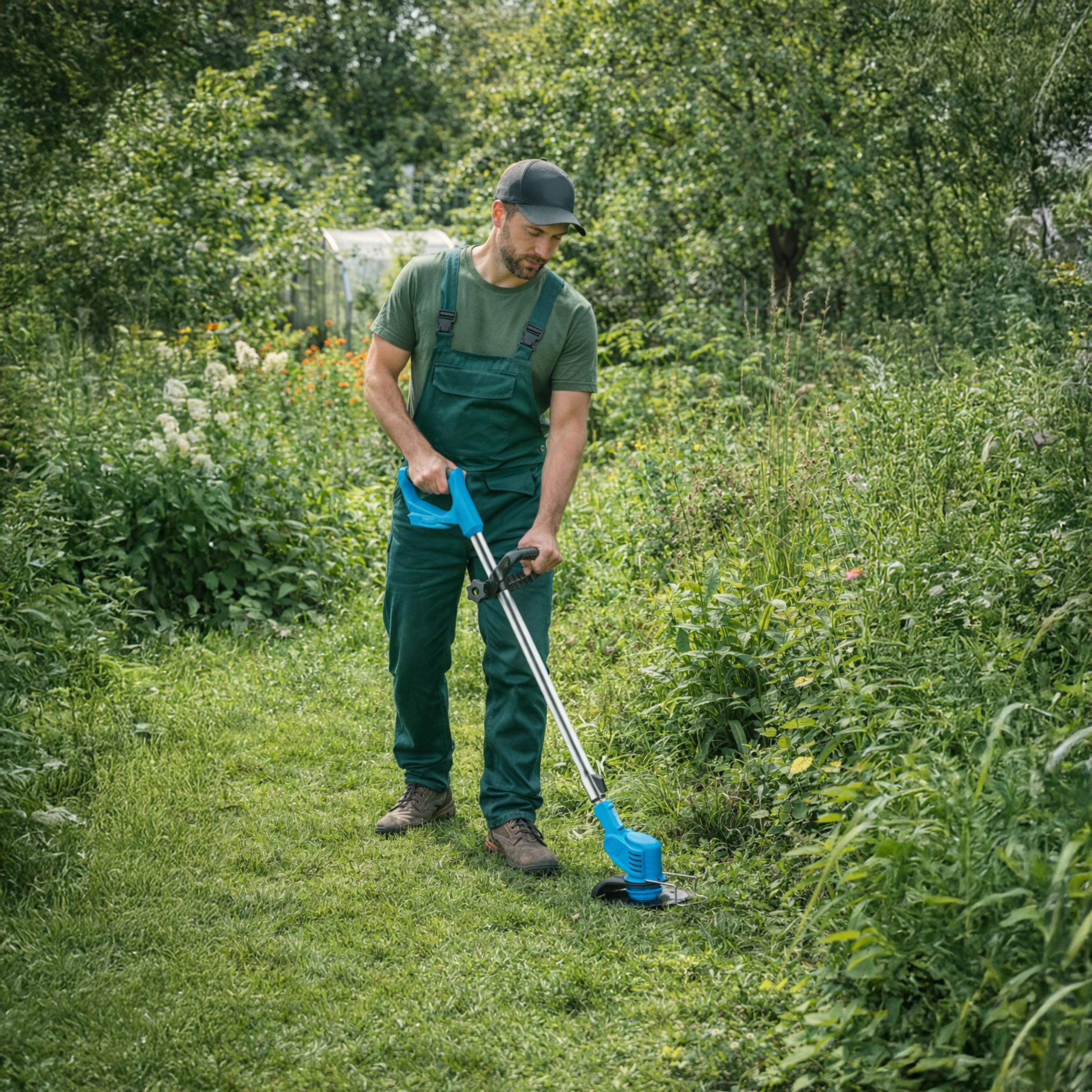 Lichte en tegelijk krachtige accu-grastrimmer voor precieze verzorging van gazonranden, paden en moeilijk bereikbare plekken. Dankzij de verstelbare telescopische steel, ergonomische handgreep en rijke accessoireset beheers je zowel fijn trimmen als zwaardere begroeiing. Twee Li‑ion accu’s en een snellader zorgen voor ononderbroken snoerloos werken.