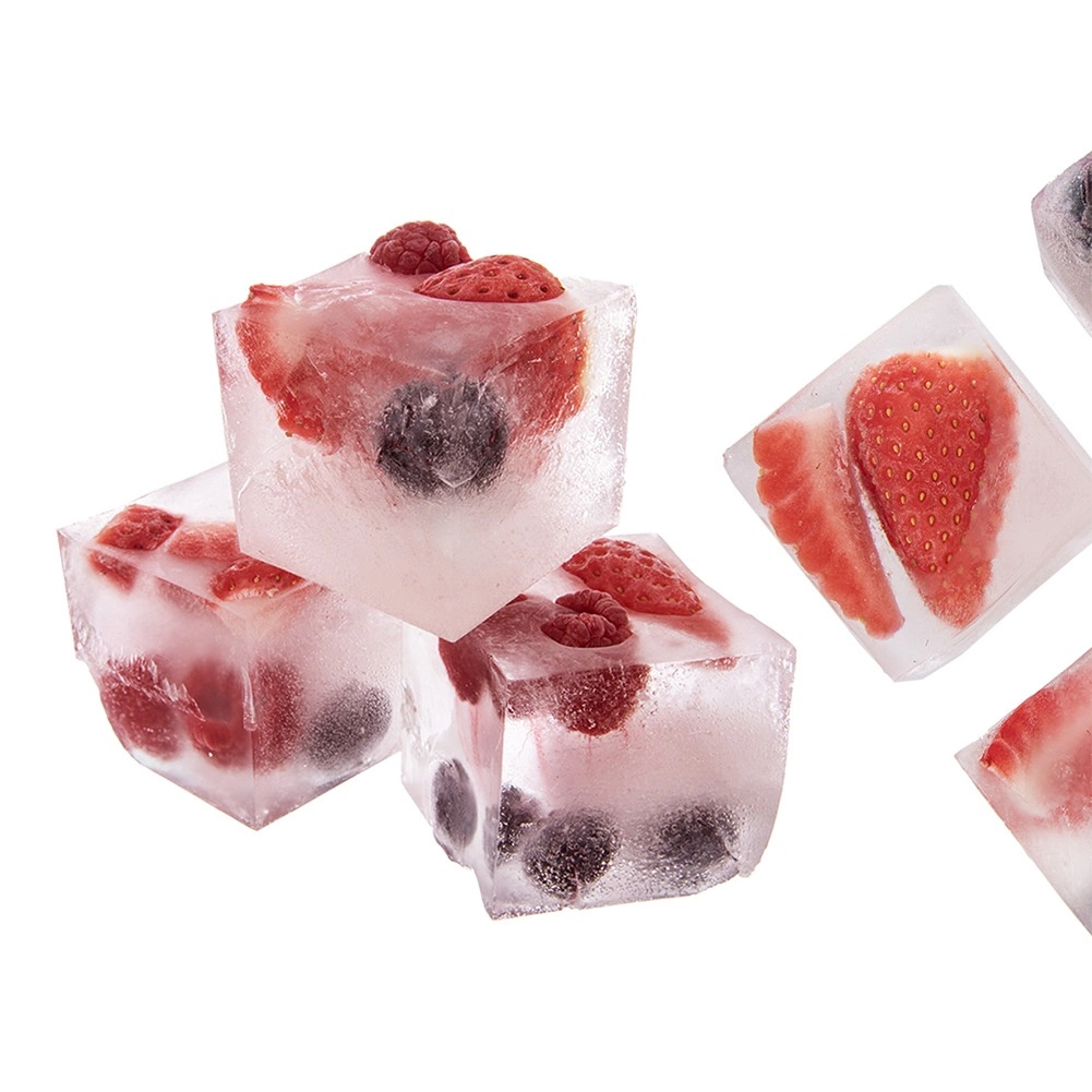 Zes grote blokjes van 5 × 5 × 5 cm smelten langzamer, zodat je drankje langer koel blijft zonder onnodige verdunning van de smaak.
