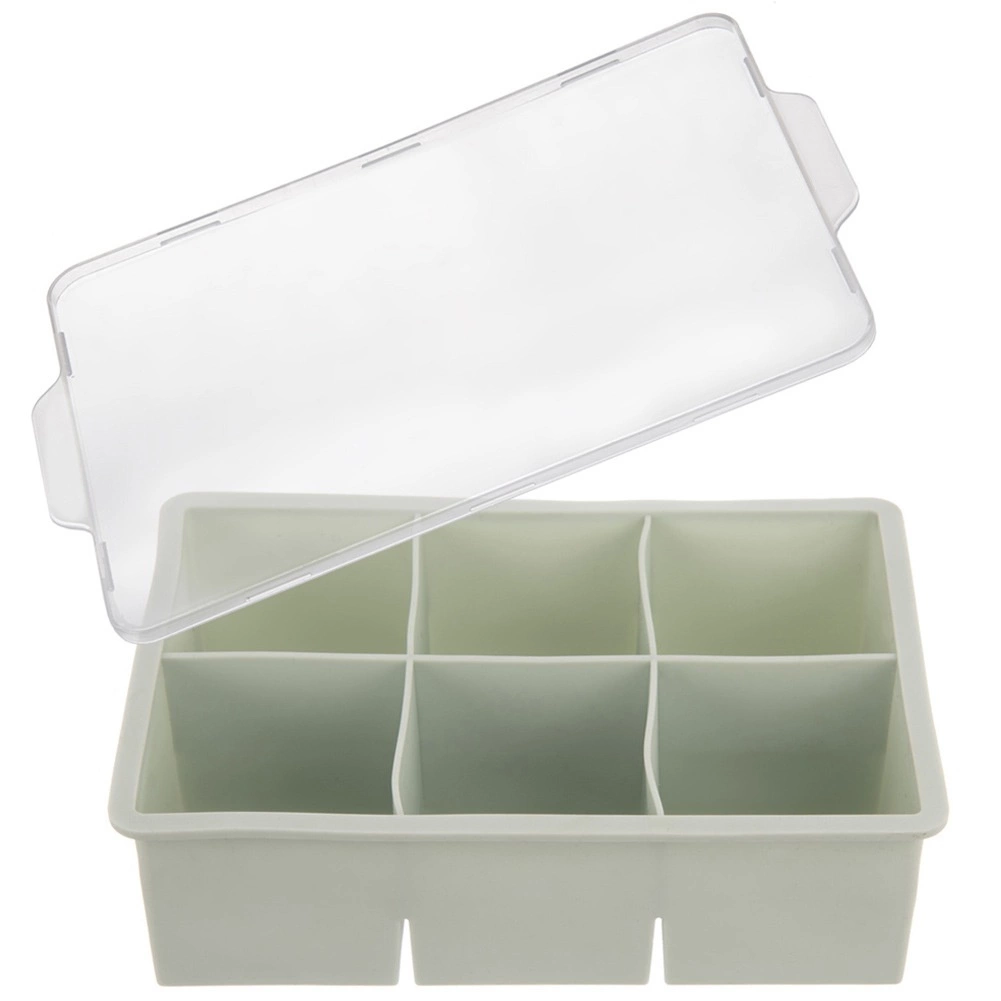 Deze hoogwaardige siliconen vorm maakt zes grote, perfect kubusvormige ijsblokjes die langzamer smelten en drankjes niet verwateren. Dankzij het stevige maar soepele materiaal is het losmaken moeiteloos en het transparante deksel maakt veilig verplaatsen naar de vriezer mogelijk zonder te morsen.