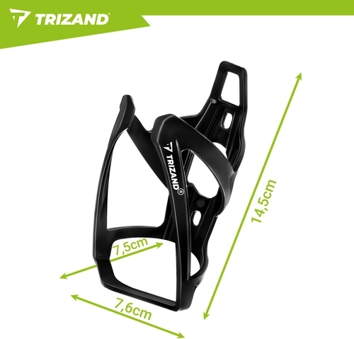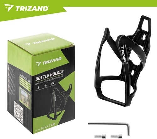 De lichte en duurzame TRIZAND fleshouder houdt je bidon stevig op zijn plaats en biedt tegelijk snelle toegang tot drinken tijdens het rijden. Dankzij de universele boutafstand van 65 mm, het lage gewicht van 55 g en de eenvoudige montage (inbussleutel en schroeven meegeleverd) is hij ideaal voor de meeste fietsen en e-bikes. Het PP-materiaal garandeert hoge duurzaamheid en compatibiliteit met standaard flessen van 500–1000 ml.