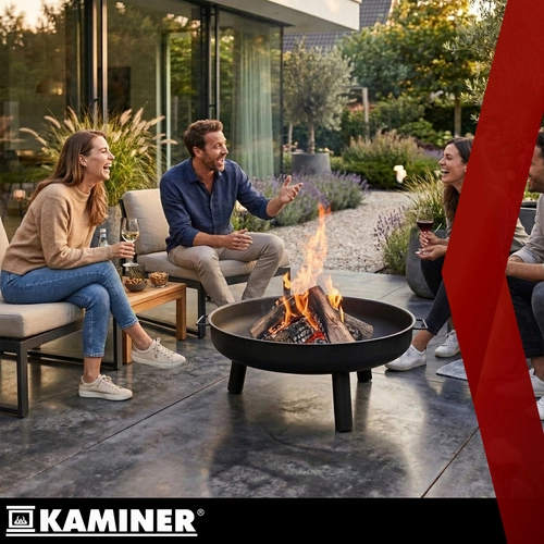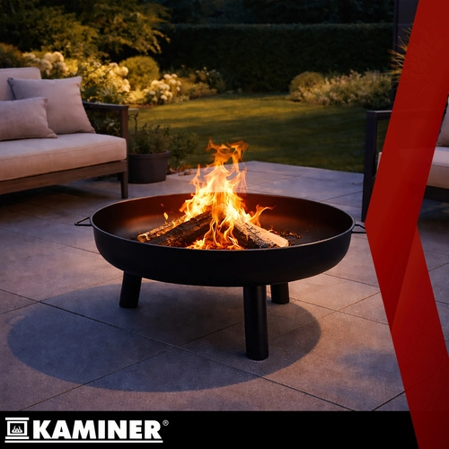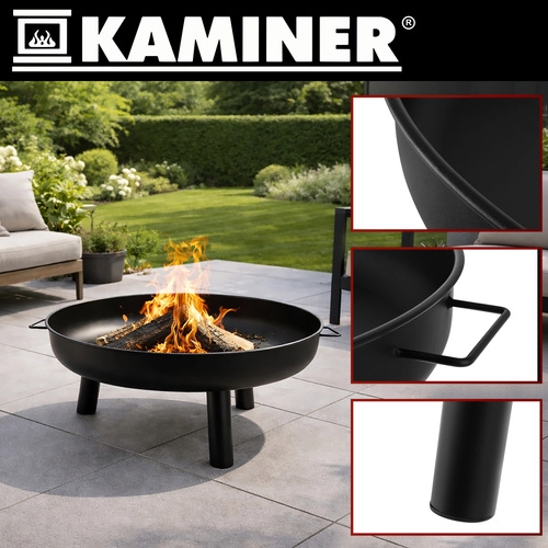 De grote KAMINER-vuurplaats met een diameter van 80 cm is een ideale keuze voor gezellige avonden met familie en vrienden. De brede, ondiepe schaal van duurzaam metaal zorgt voor veilig en gecontroleerd branden van hout of houtskool, terwijl de driepoot hoge stabiliteit en bodemvrijheid boven de vloer biedt.