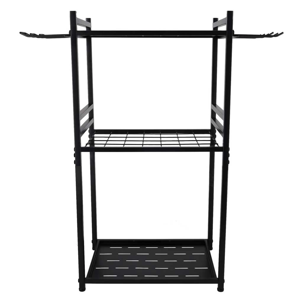 Het frame van koolstofstaal en geventileerde schappen dragen ook zwaarder gereedschap zonder te wiebelen. Het open ontwerp bevordert waterafvoer en luchtcirculatie.