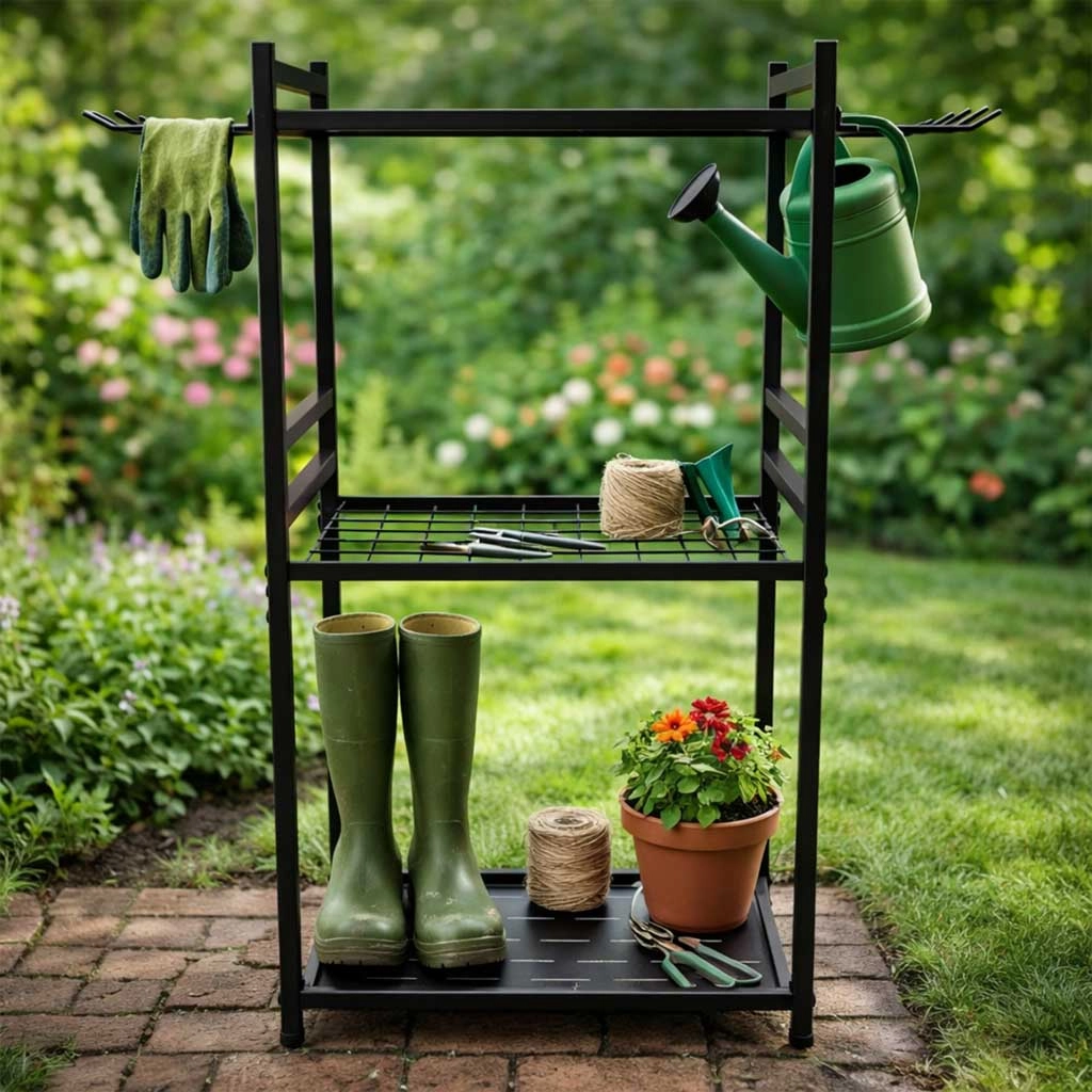 Houd tuin, garage en werkplaats perfect geordend met de metalen standaard LUARO. Dankzij drie niveaus met schappen en zijhaken krijgt u overzichtelijke opslag van gereedschap, snelle toegang en een stabiele, duurzame constructie voor dagelijks gebruik.