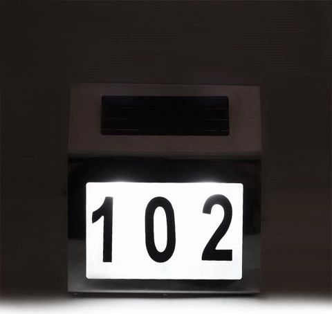 Krachtige LED verlicht het nummerpaneel gelijkmatig, waardoor het adres ook in volledige duisternis goed leesbaar is.