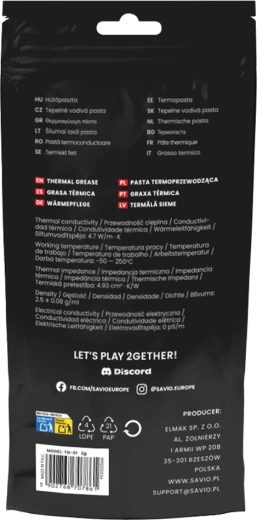 SAVIO TG-01 is een hoogwaardige thermische pasta met koolstofmicrodeeltjes die microscopische oneffenheden tussen de IHS van de cpu en de koelvoet perfect opvult. Zo worden stabiele temperaturen bereikt en blijft de pc stil en krachtig presteren.