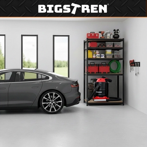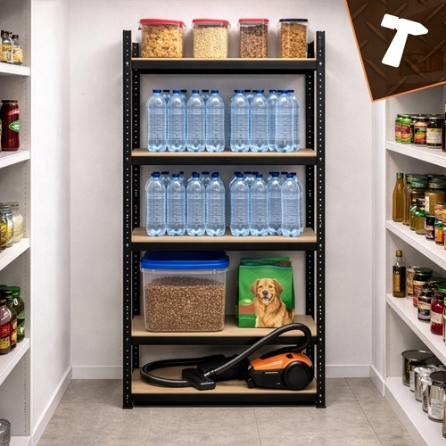 Het BIGSTREN-rek is ontworpen voor veilige en overzichtelijke opslag van zowel lichte als zware voorwerpen. Versterkte planken met twee dragers onder elke plaat elimineren doorbuigen en verhogen de stabiliteit van de hele constructie. Poedergecoat staal beschermt tegen corrosie en mechanische schade, waardoor het rek geschikt is voor veeleisende omstandigheden in garage of magazijn.