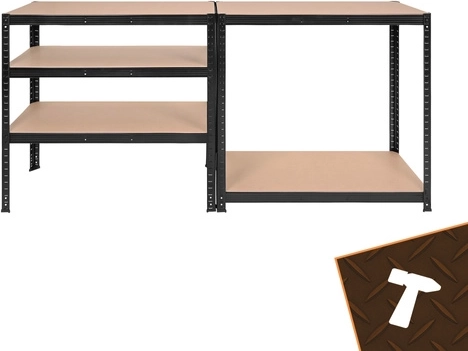 Elke plank is versterkt met twee dragers die de stabiliteit verhogen en doorbuigen voorkomen. U bergt ook zeer zware voorwerpen veilig op, bijvoorbeeld een set banden.