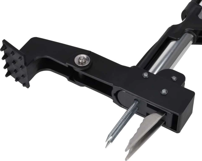 Metalen vingers met stevige grip dringen de grond in, omsluiten de wortel en trekken het onkruid zelfs uit verdichte plekken – snel, schoon en moeiteloos.