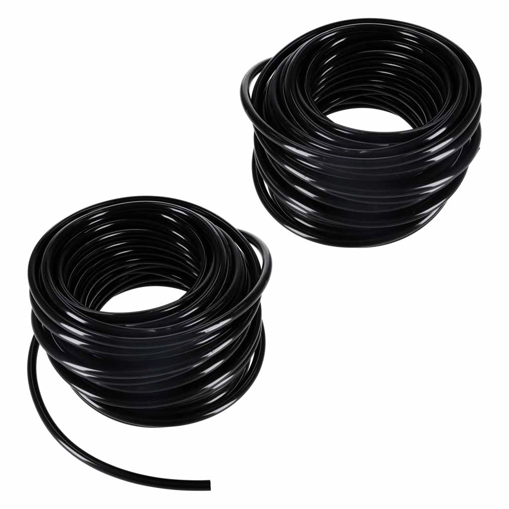 Twee spoelen van 12,5 m flexibele slang, tientallen T-koppelingen en grondpennen voor eenvoudig leiden en vertakken – u past de plaatsing exact aan uw border aan.