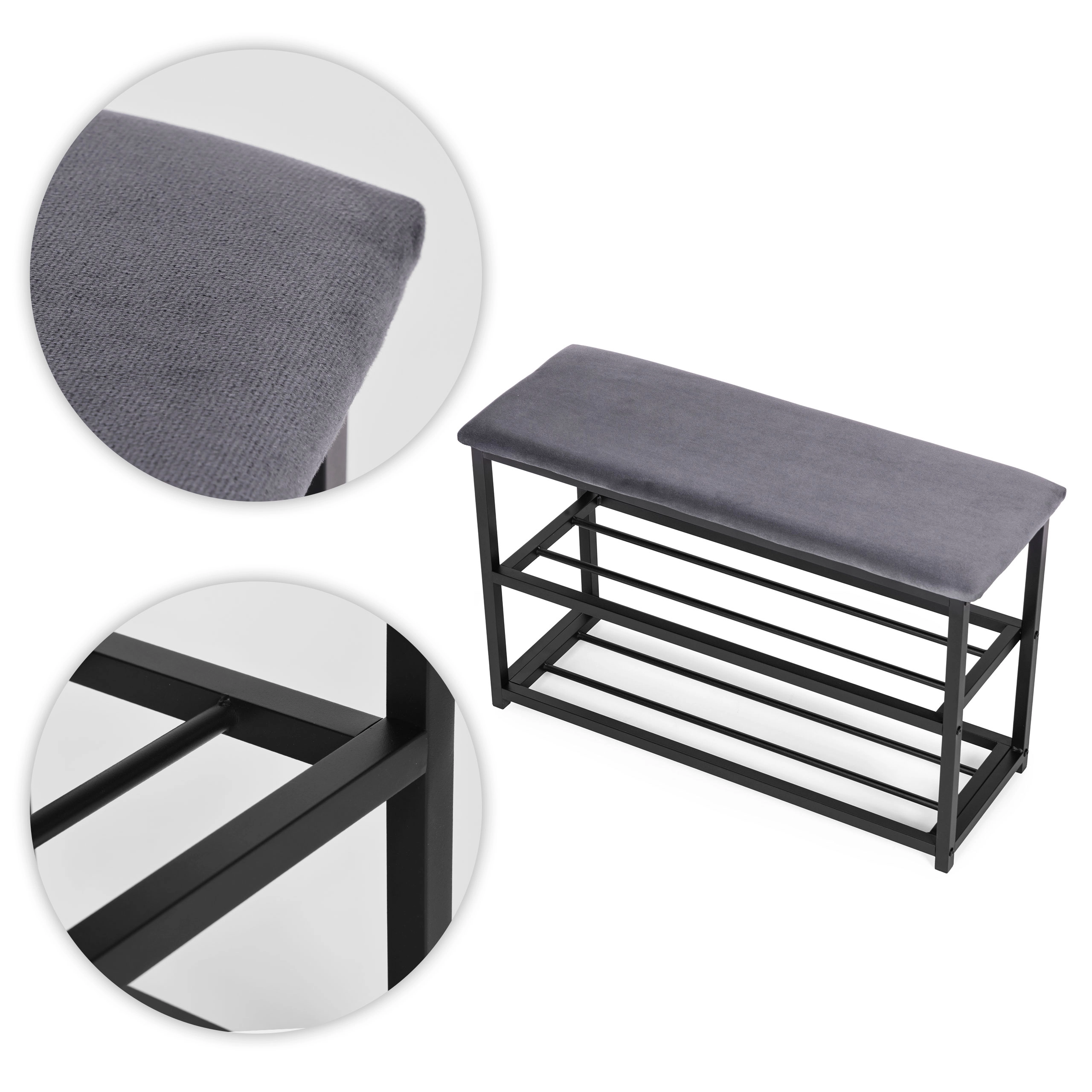De zachte zitting met schuimvulling (ca. 3 cm) biedt comfort bij het aantrekken van schoenen en geeft de bank een elegante look in grijstint.