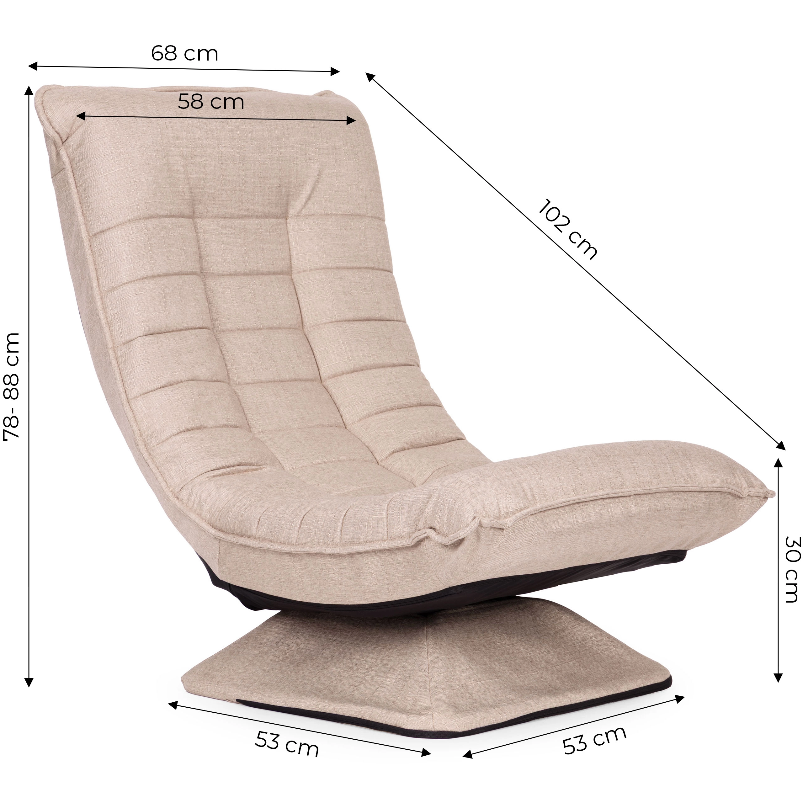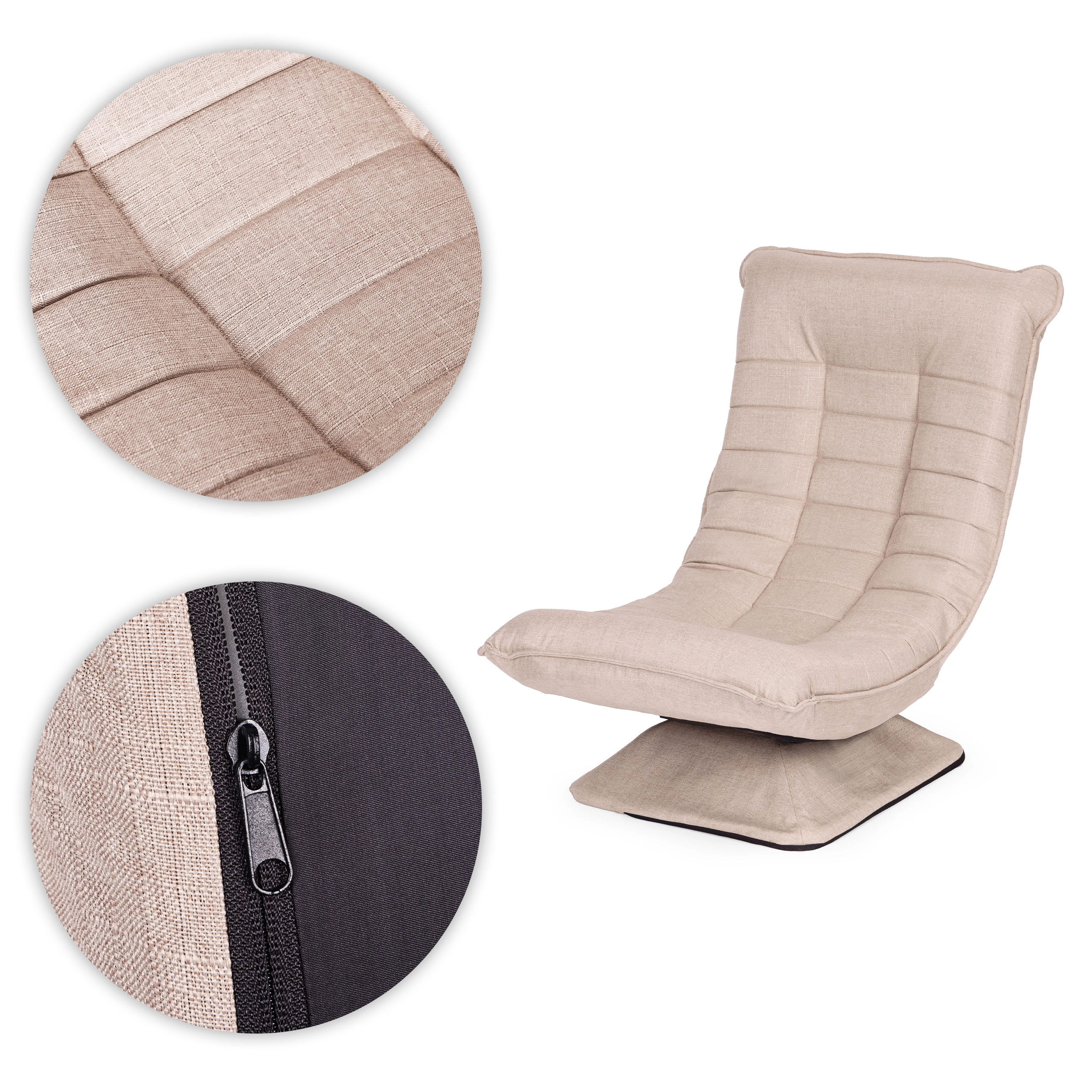 Dankzij de 360°-draaiing geniet je van bewegingsvrijheid, terwijl je met 4 kantelhoeken snel aanpast aan je activiteit – van geconcentreerd zitten tot ontspannen loungen. De afneembare hoes met rits van linnen stof is wasbaar tot 30 °C, waardoor het onderhoud eenvoudig is en de stoel lang als nieuw blijft.
