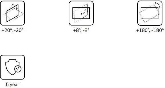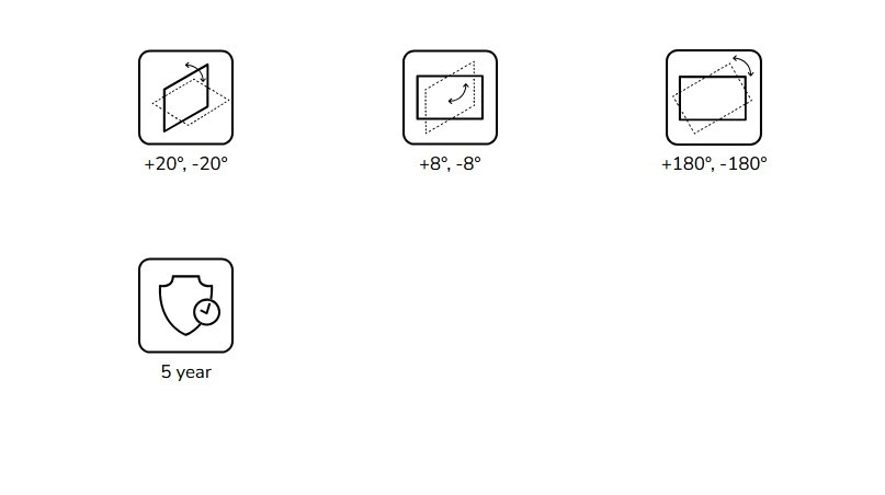 Voor eenvoudige installatie en dagelijks gebruik biedt de houder een complete set instellingen: kanteling +20°/−20° voor hoogtecorrectie van het beeld, volledige 360° rotatie voor ideale positionering en een horizontale fijnafstelling van +8°/−8°, wat een recht en perfect gecentreerd beeld garandeert.
