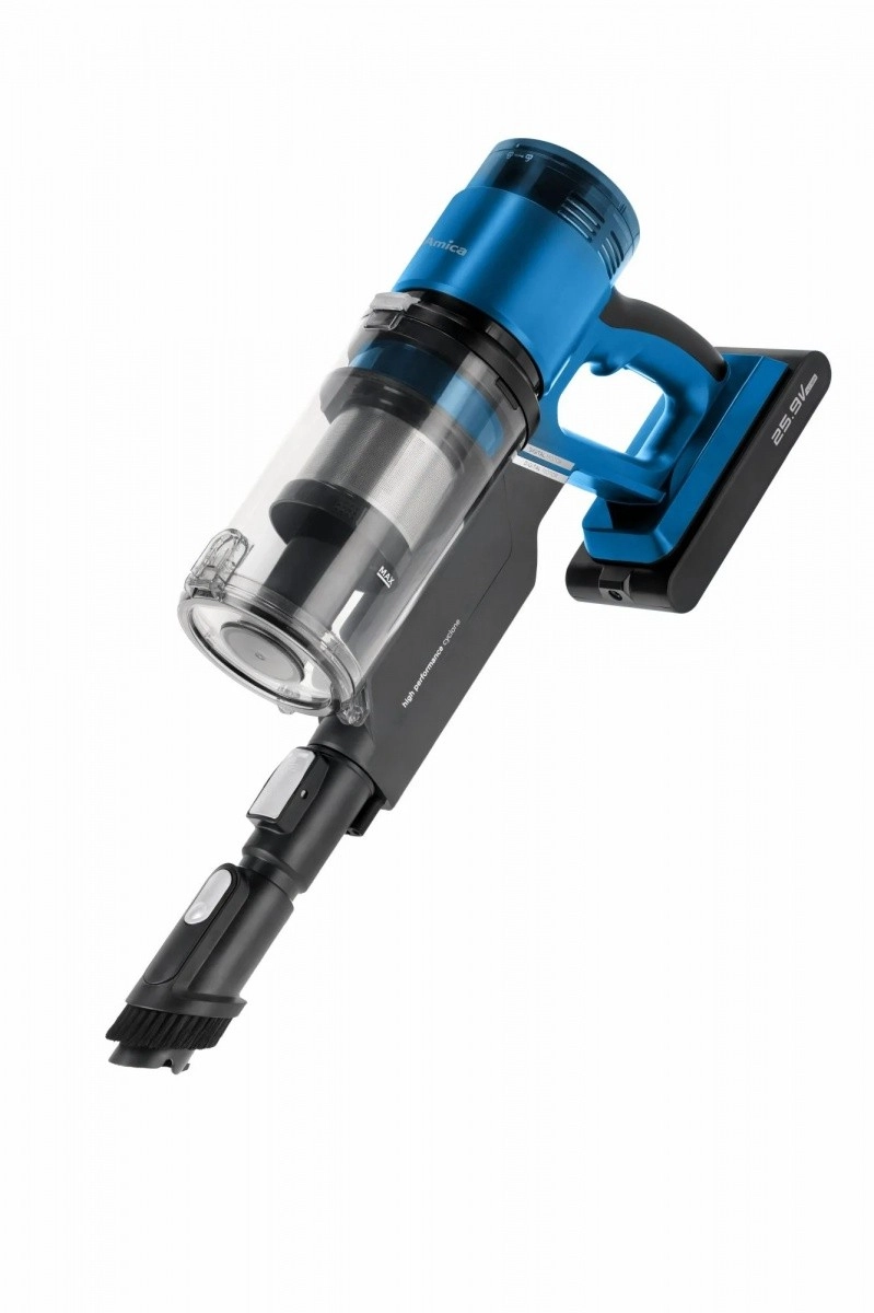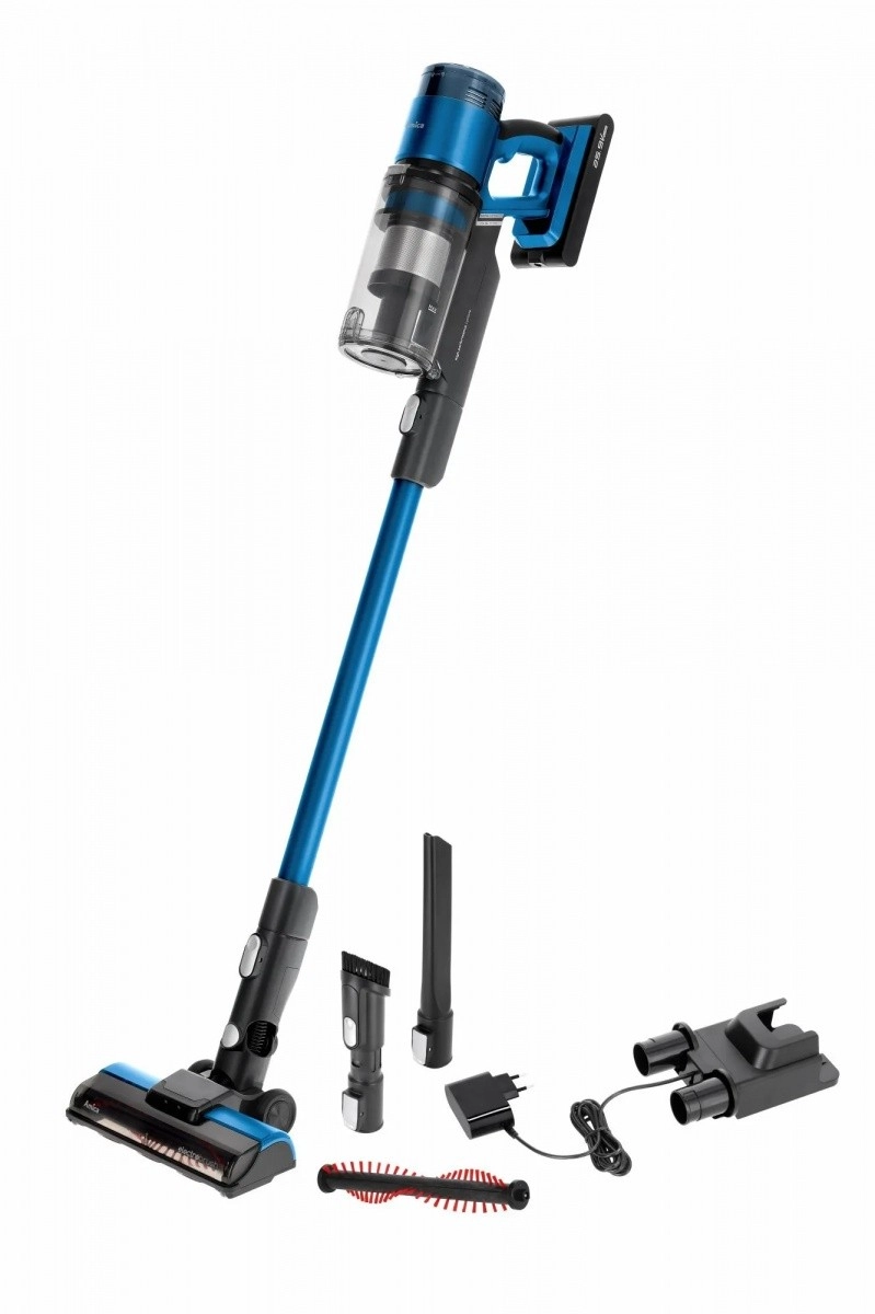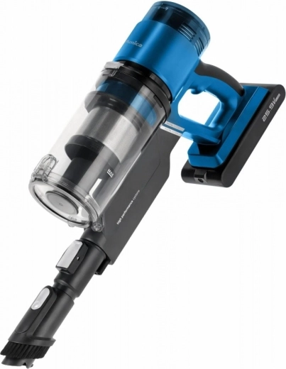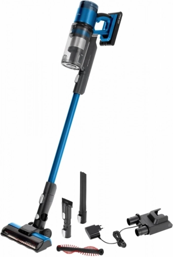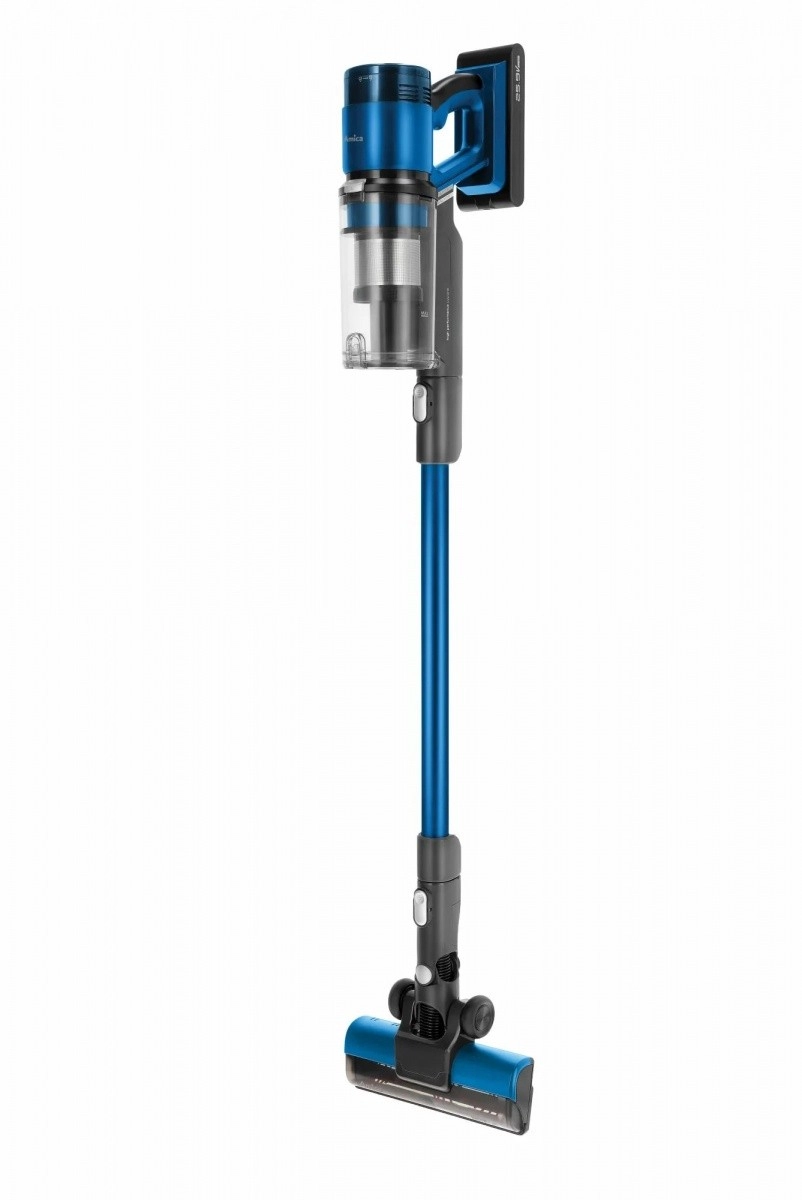 De lichte en krachtige steelstofzuiger VMB Zonda combineert het gemak van 2‑in‑1 met een handunit, een verwisselbare Li‑ion batterij, tot 50 minuten werktijd en een gemotoriseerde elektrische borstelkop met LED voor precieze reiniging van zowel harde vloeren als tapijten.