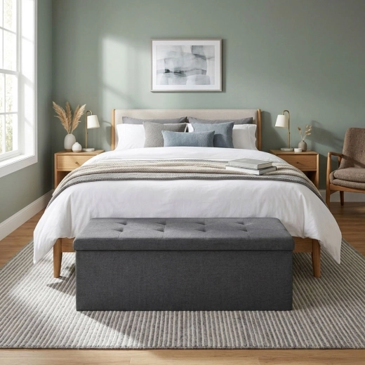 De bank biedt een comfortabel gestoffeerde zitting en tegelijk een ruime binnenbox waarin u textiel, speelgoed en accessoires kunt opbergen. Ideaal voor de hal, slaapkamer en woonkamer.