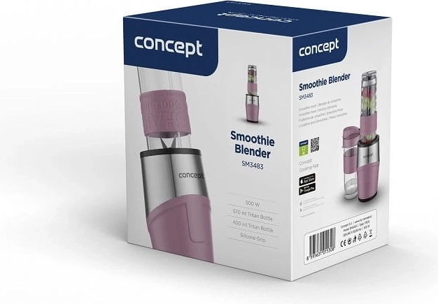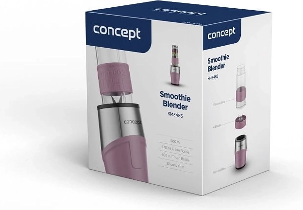 Compacte smoothieblender met een vermogen van 500 W voor het snel bereiden van dranken direct in draagbare flessen. Twee duurzame Tritan-flessen met deksel en draaglus, veiligheidsvergrendeling, antislipvoet en snelheid tot 23.000 tpm zorgen voor eenvoudig, schoon en betrouwbaar blenden van smoothies, milkshakes en ijskoffie.