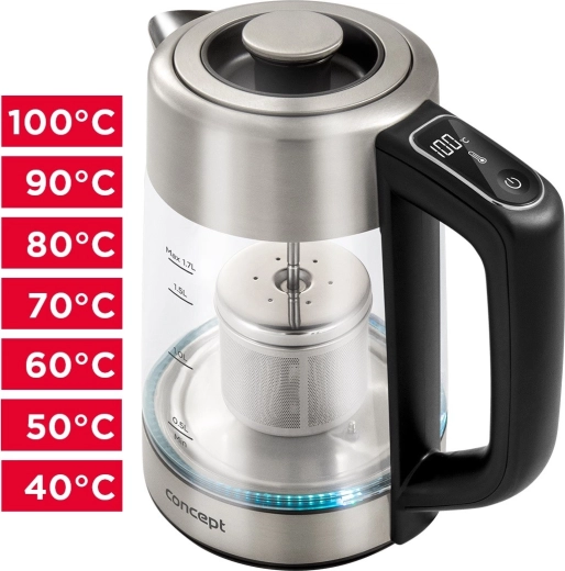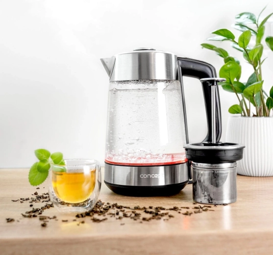 In de verpakking zit een speciaal deksel met een theezeefje, waarmee je losse en voorgedoseerde thee direct in de ketel kunt trekken. Zodra de ideale trektijd is bereikt, til je het zeefje eenvoudig boven het waterniveau en geniet je van een pure, volle smaak zonder over-trekken.