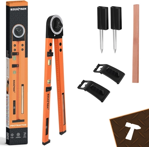 De verstelbare hoekmeter BIGSTREN 3-in-1 combineert drie kernfuncties: nauwkeurig meten en overbrengen van hoeken, controle van vlakheid met twee libellen en praktisch tekenen van cirkels/bogen met een potloodhouder. Dankzij het bereik van 0–270° kunt u eenvoudig verstekzaagsneden, het plaatsen van lijsten, tegel- en timmerwerk en montageklussen op de bouw uitvoeren.
