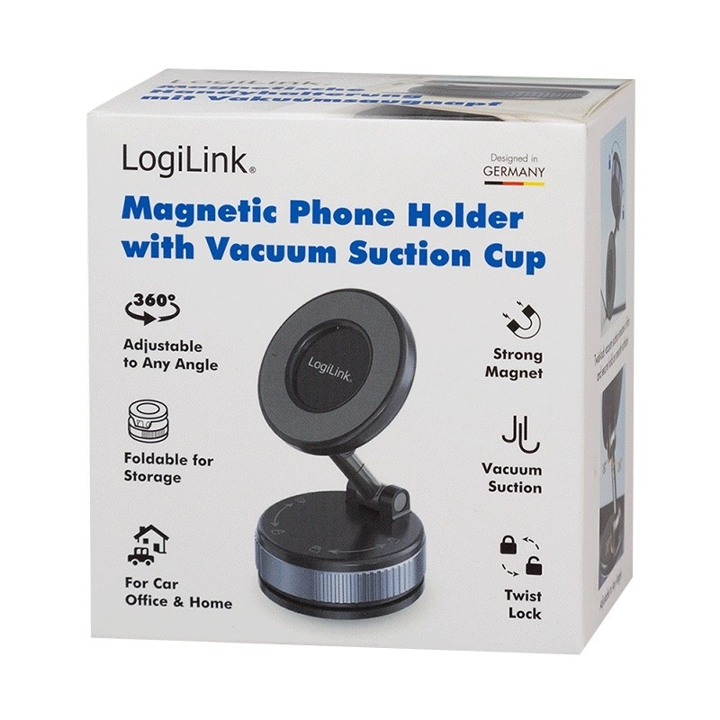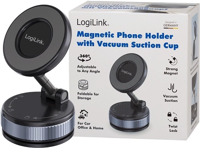 Compacte magnetische smartphonehouder met zuignap, voorzien van een dubbele verstel-as, een draaibare vacuümvergrendelingsbasis en krachtige N52H‑magneten met een trekkracht tot 16 N voor een veilige bevestiging. Dankzij het opvouwbare ontwerp is hij ideaal voor op reis en in de auto, met nauwkeurige hoogte- en hoekinstelling.