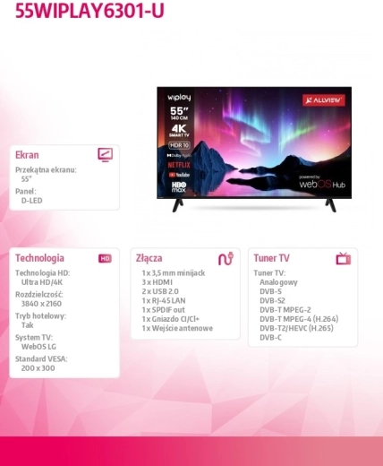 Stap in de wereld van thuisentertainment met een 55-inch scherm dat gedetailleerd beeld en vloeiende bediening biedt. De intuïtieve webOS-omgeving geeft met één klik toegang tot favoriete streamingdiensten zoals Netflix, HBO Max, Disney+ en YouTube. Elegante, dunne randen en een slank profiel passen perfect in een modern interieur.