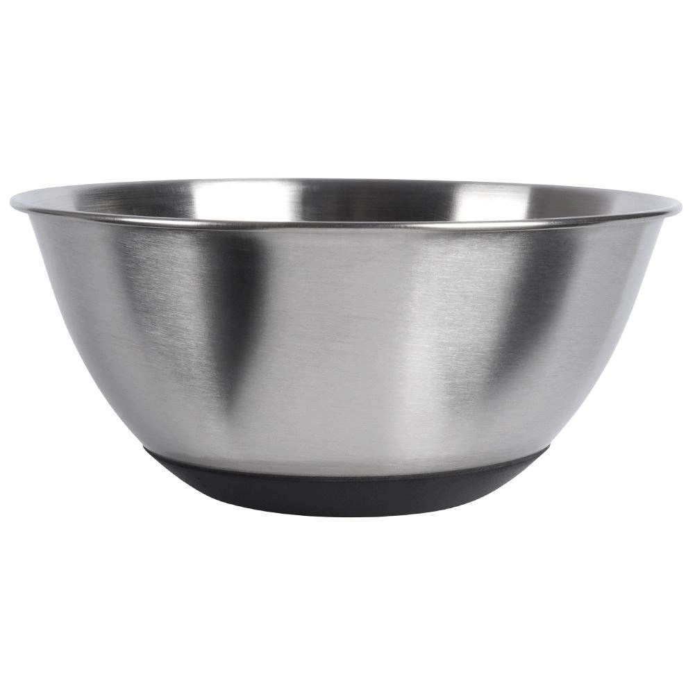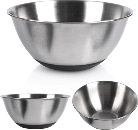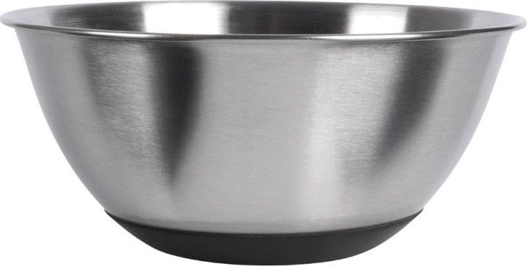 Deze veelzijdige roestvrijstalen kom combineert praktische afmetingen met hoge duurzaamheid en zekerheid in gebruik. De antislipbodem in het zwart voorkomt schuiven op het werkblad, zodat je comfortabel kunt mengen, kloppen en kneden. De elegante matte afwerking en de klassieke vorm maken het ook een fraaie kom voor direct serveren op tafel.