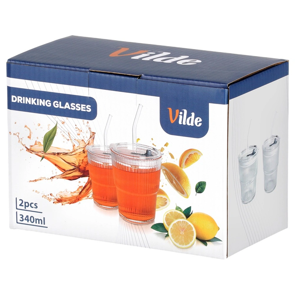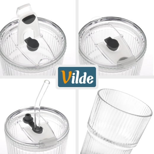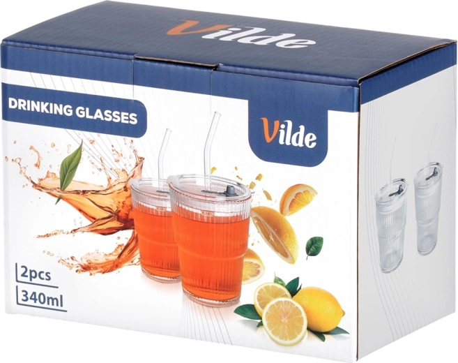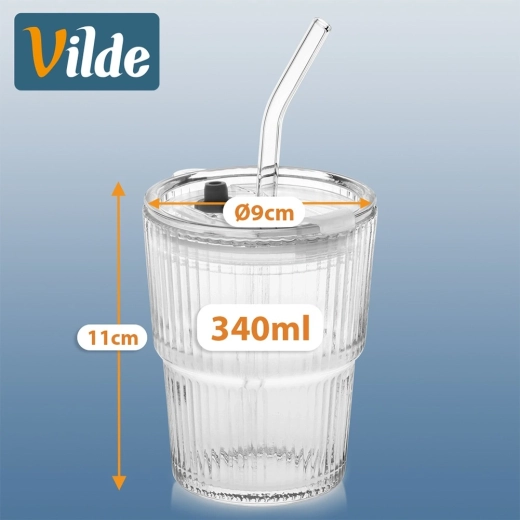 Elk glas heeft een inhoud van 340 ml en compacte afmetingen voor dagelijks gebruik. Het deksel helpt morsen te beperken en beschermt de drank tegen stof, terwijl het rietje comfortabel drinken mogelijk maakt onderweg of buiten. Origineel product van het merk Vilde, vervaardigd volgens Europese normen.