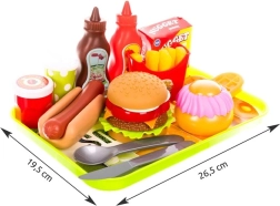Deze creatieve fastfoodset biedt kinderen uren speelplezier. Dankzij de uitneembare elementen kunnen ze zelf hun hamburger samenstellen, een cupcake versieren met “glazuur” en een menu naar eigen fantasie bereiden. Realistische details en felle kleuren nodigen uit tot spel en het nabootsen van echte voedselbereiding.