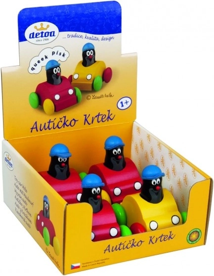 Leuk speelgoedautootje met het figuurtje de Mol, dat bij het indrukken een piep geluid maakt. Ideaal voor kinderen vanaf 1 jaar, gemaakt van veilige materialen.