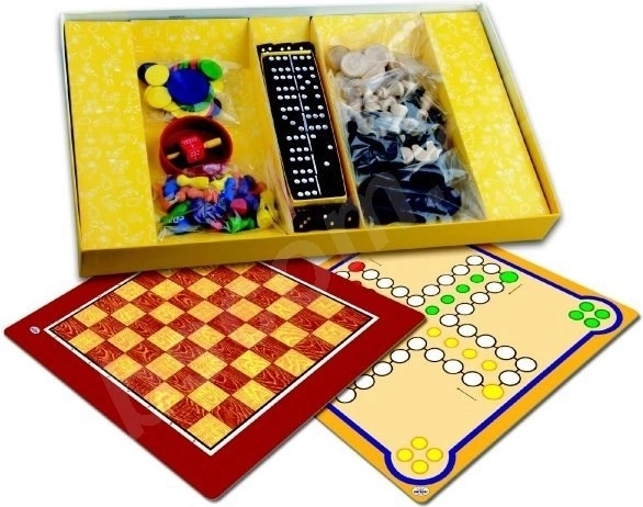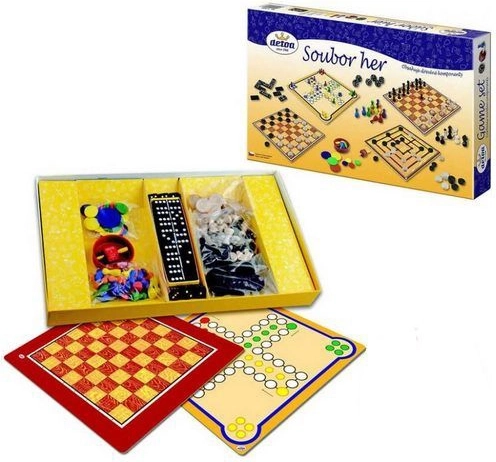Detoa Spelletjesverzameling biedt een hele reeks geliefde spellen voor alle generaties. Bevat Mens erger je niet!, domino, dobbelstenen, schaken, dammen, vlooienspel en molenspel met stijlvolle houten componenten en speelborden van hard karton.