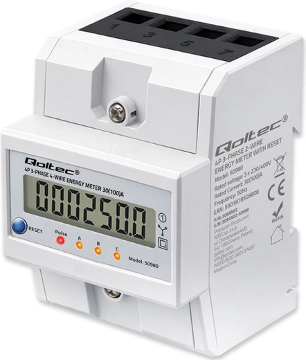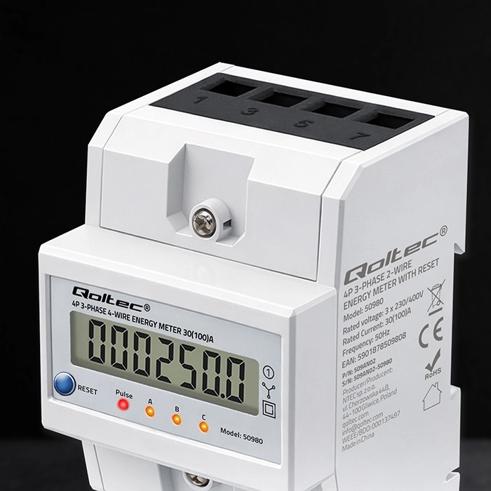 Deze driefase, vieraderige energiemeter is een betrouwbare oplossing voor continue monitoring van het elektriciteitsverbruik. Het 6+1 LCD-scherm toont de afgenomen energie in kWh op basis van meetimpulsen, terwijl de LED de actuele afname signaleert met een pulsconstante van 400 imp/kWh. Dankzij de compacte afmetingen en montage op een DIN-rail van 35 mm is de installatie snel en probleemloos.