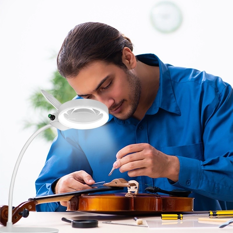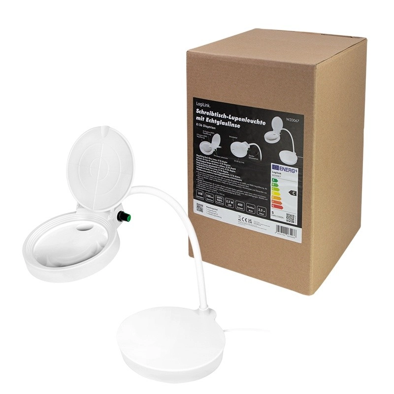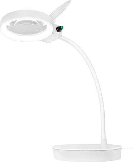 De robuuste, verzwaarde voet zorgt voor stabiliteit op het werkblad en het opklapbare klepje beschermt de lens tegen stof en krassen. Het compacte ontwerp met ronde LED-lichtkring biedt gelijkmatig, niet-verblindend licht – ideaal voor modelbouwers, horlogemakers, het lezen van kleine lettertjes of het repareren van elektronica.