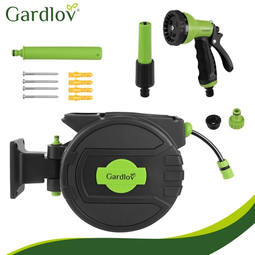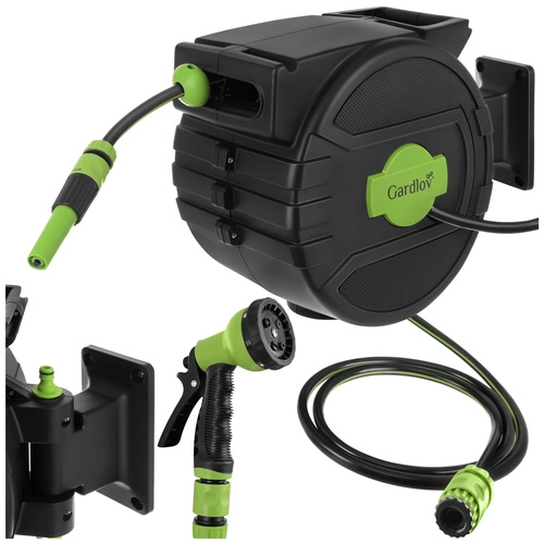 Geen in de knoop geraakte slangen en geen vermoeiend handmatig oprollen meer. De wandhaspel van GARDLOV met een slang van 20 m biedt automatisch oprollen, een traploze lengtevergrendeling, een 180° draaibare beugel en een spuitpistool met 7 standen. Dankzij de compatibiliteit met 1/2"- en 3/4"-kranen en een maximale druk van 6 bar besproei je moeiteloos het hele terrein zonder chaos.