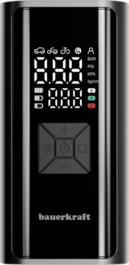 De geïntegreerde 6000 mAh batterij zorgt voor een lange gebruiksduur en dient tevens als powerbank voor noodbijkladen van je telefoon. De LED-zaklamp met drie modi (continu, knipperen, SOS) vergemakkelijkt het werk in het donker en in noodsituaties. De compressor ondersteunt 4 maateenheden (PSI, BAR, KPA, kg/cm²) en 4 modi voor verschillende soorten banden – kies gewoon, sluit de slang aan en pompen maar.