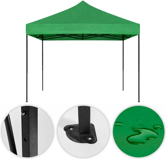 Stevige 420D-stof met PVC-afwerking beschermt tegen regen en uv-straling. Een uitstekende keuze voor gebruik in de tuin, op markten en voor seizoensgebruik.