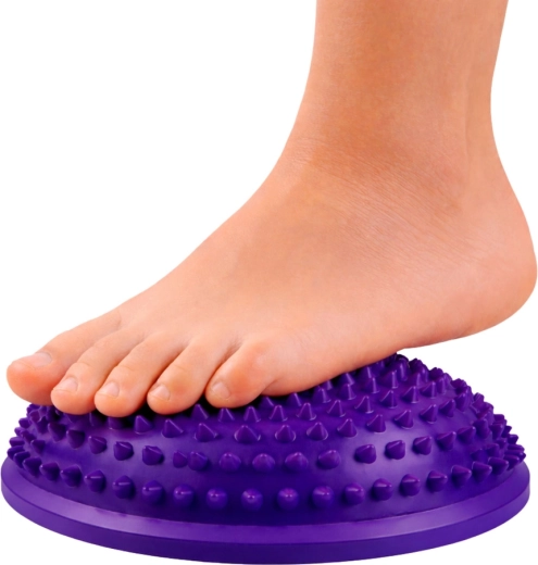 De paarse halfronde kegel met een diameter van 16 cm is een veelzijdig hulpmiddel voor balanstraining, corestabilisatie en sensomotorische stimulatie. De kegelvormige noppen masseren de voeten zachtjes, bevorderen de doorbloeding en activeren de voetboogspieren. Ideaal voor kinderen en volwassenen – voor thuis, in kinderdagverblijven, scholen en fysiotherapiepraktijken.