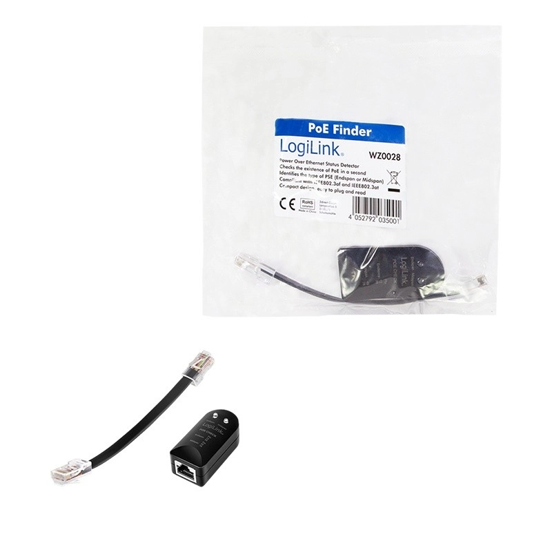 Bespaar tijd bij netdiagnoses met de universele LOGILINK-kabeltester. Het apparaat maakt het eenvoudig om de bedrading en continuïteit van aders te controleren, basisproblemen met bekabeling snel te identificeren en de aanwezigheid van PoE-voeding veilig te verifiëren. De praktische PoE Finder bepaalt nauwkeurig of de voeding actief is op de eindparen (1–2/3–6) of middenparen (4–5/7–8).