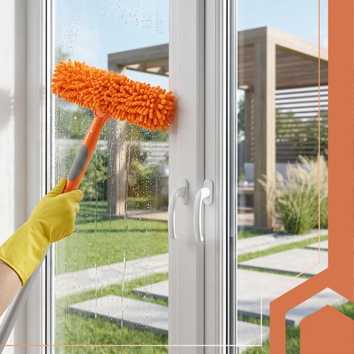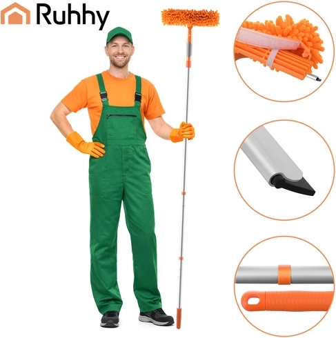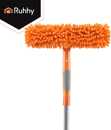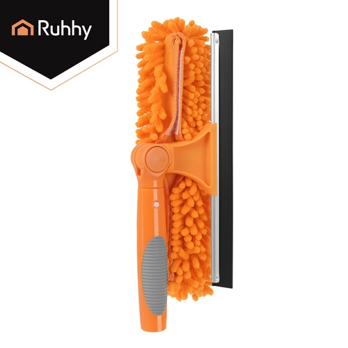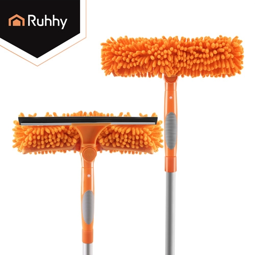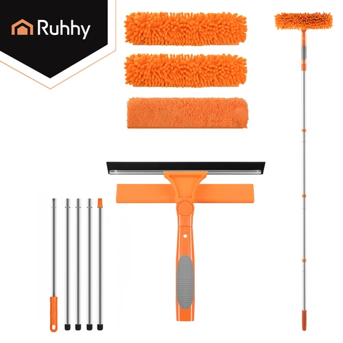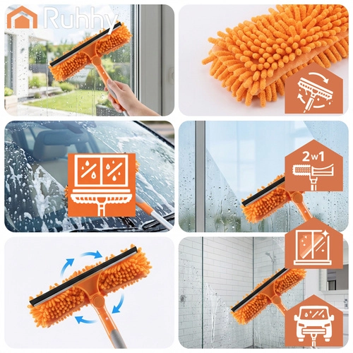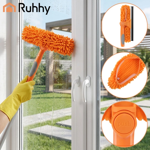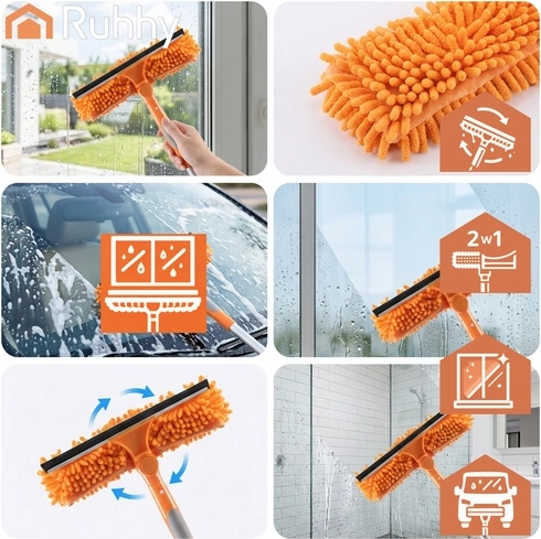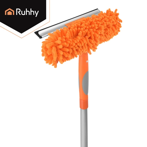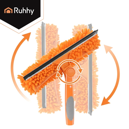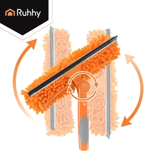 De RUHHY 3-in-1 raamreiniger is een universele hulp voor huis, auto en terras. De lichte telescopische aluminiumsteel verlengt tot 1,8 m, zodat je veilig de bovenranden van ramen en grote glaspartijen bereikt. Het 180° draaibare scharnier laat je verticaal en horizontaal reinigen en eenvoudig hoeken bereiken.