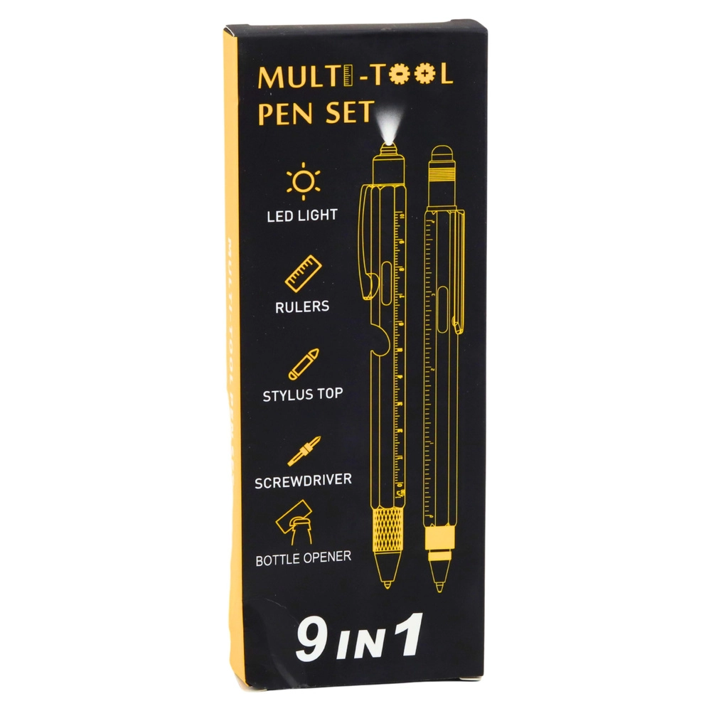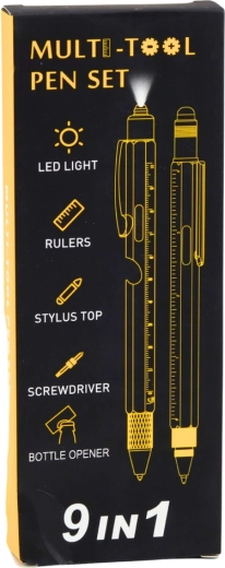 - 9-in-1 tool (zwarte pen) + multifunctionele pen (gele)