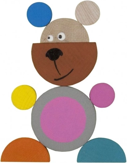 Met 44 gekleurde houten stukjes met magneet maken kinderen tientallen motieven – van dieren tot eenvoudige bouwwerken. Ideaal voor het ontwikkelen van fantasie en zelfstandig spel.