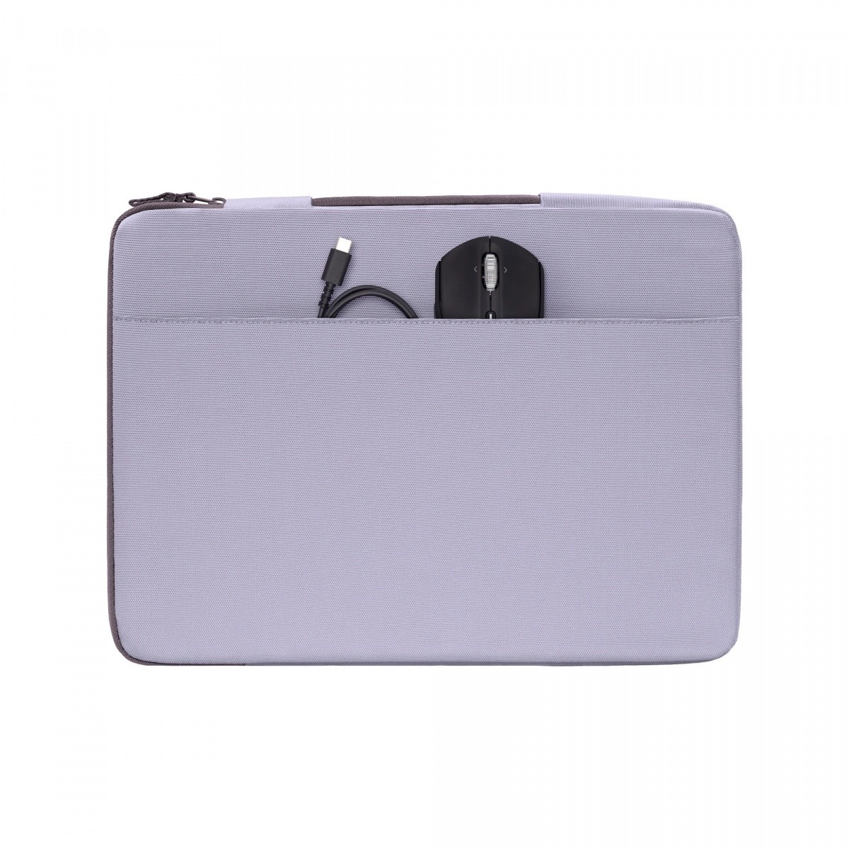 De hoes biedt moeiteloos plaats aan de meeste 14"-laptops, inclusief compacte 13"-modellen. Het snel toegankelijke voorvak houdt kabels, muis, telefoon of USB‑C-accessoires overzichtelijk binnen handbereik. Dankzij het slanke profiel en de verborgen handgreep draag je hem gemakkelijk los of schuif je hem in een rugzak of tas.