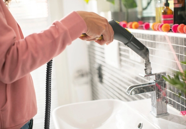 Ideaal voor rondingen en hoeken rondom kranen, spoelbakken en baden. Stoom dringt door in voegen en verwijdert hardnekkig vuil zonder chemicaliën.