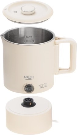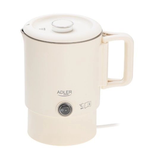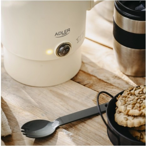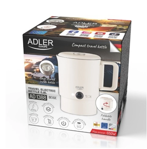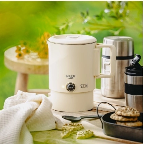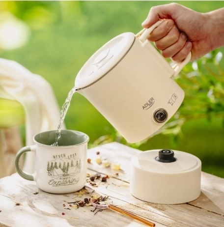 De compacte reiswaterkoker ADLER AD 1388 met een inhoud van 0,8 l is ideaal voor vakanties, zakenreizen en kamperen. Dankzij de inklapbare handgreep en de mogelijkheid om de voet in de waterkoker op te bergen neemt hij minimale ruimte in, terwijl hij snel water kookt, veilige dubbele wanden heeft en automatisch uitschakelt.