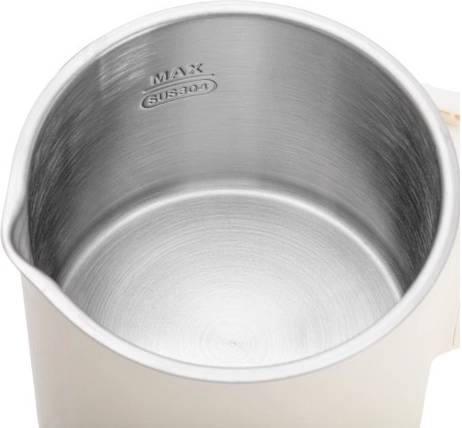 Dankzij het vlakke verwarmingselement verwarmt hij water snel en energiezuinig. De waterkoker heeft een spiraalloze roestvrijstalen bodem voor eenvoudig onderhoud, een bedrijfsindicator en automatisch uitschakelen, inclusief droogkookbeveiliging. De inhoud van 0,8 l (min. 0,2 l) is voldoende voor 2–3 kopjes thee of koffie.