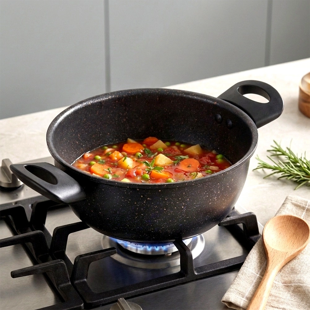De duurzame granietlaag voorkomt aanbranden en maakt het mogelijk gerechten met minimaal vet te bereiden. Reinigen gaat snel en moeiteloos.