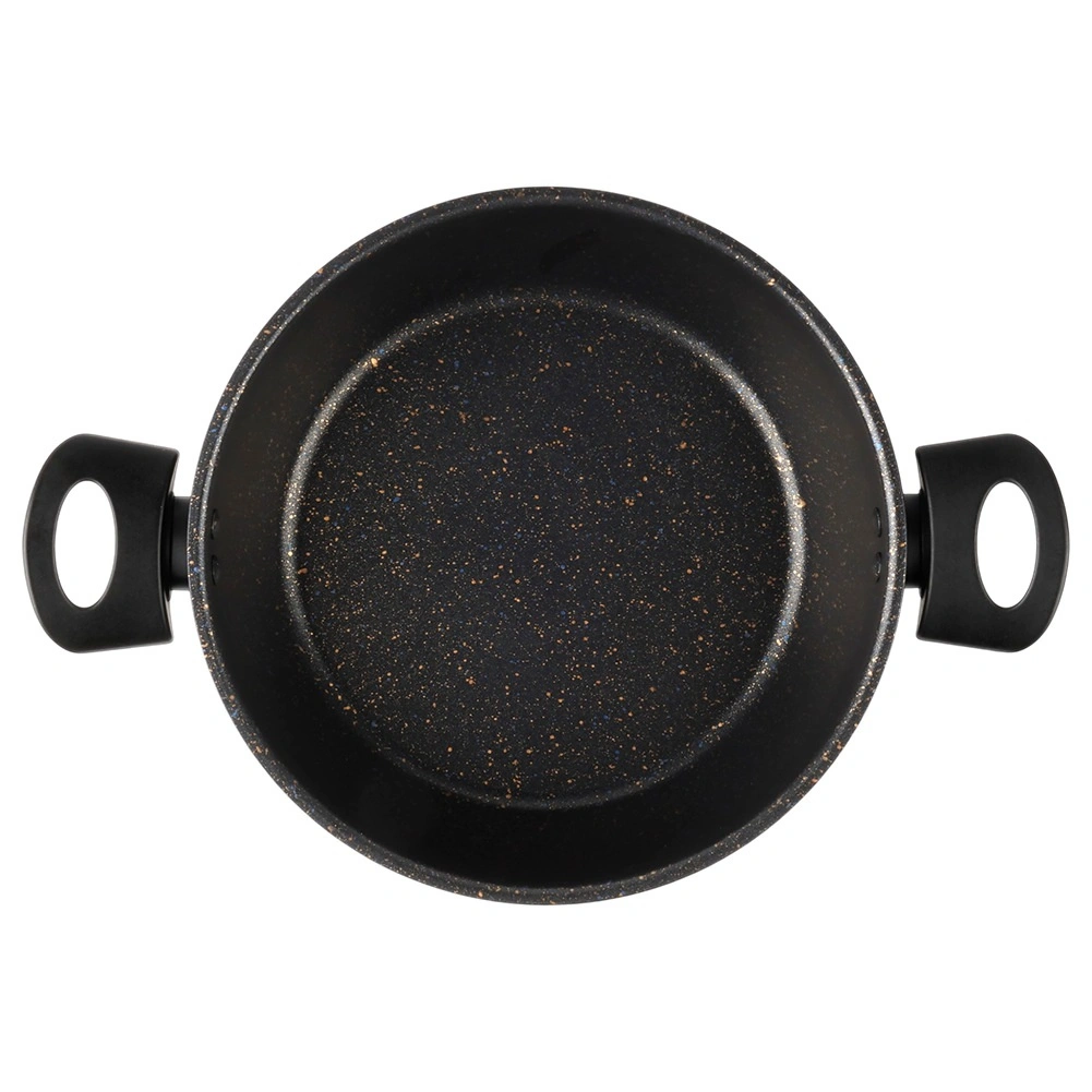 Praktische granieten pan met een inhoud van 2,7 l en een diameter van 24 cm, ideaal voor dagelijks koken, stoven en opwarmen. Dankzij de anti-aanbak granieten coating bereid je gerechten met minimaal vet, warmt hij gelijkmatig op en is hij makkelijk te reinigen – geschikt voor de vaatwasser. Compatibel met gas-, elektrische en keramische kookplaten (niet voor inductie).