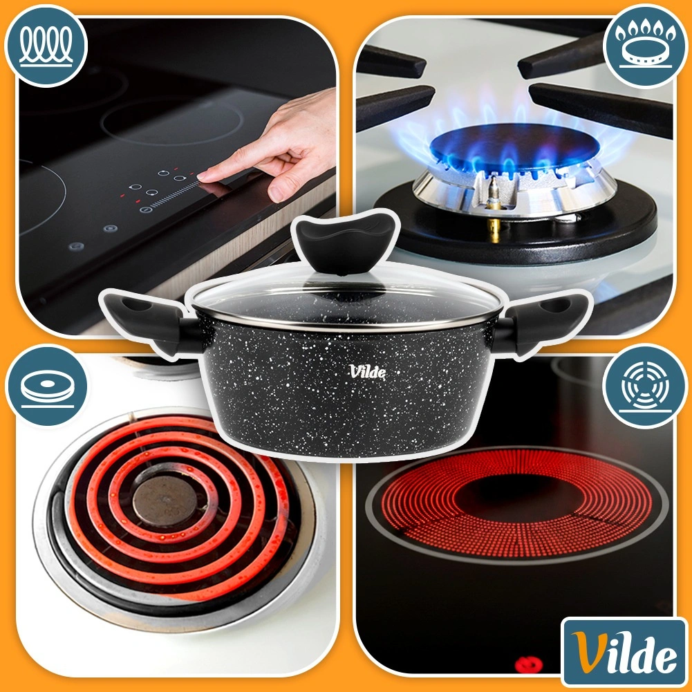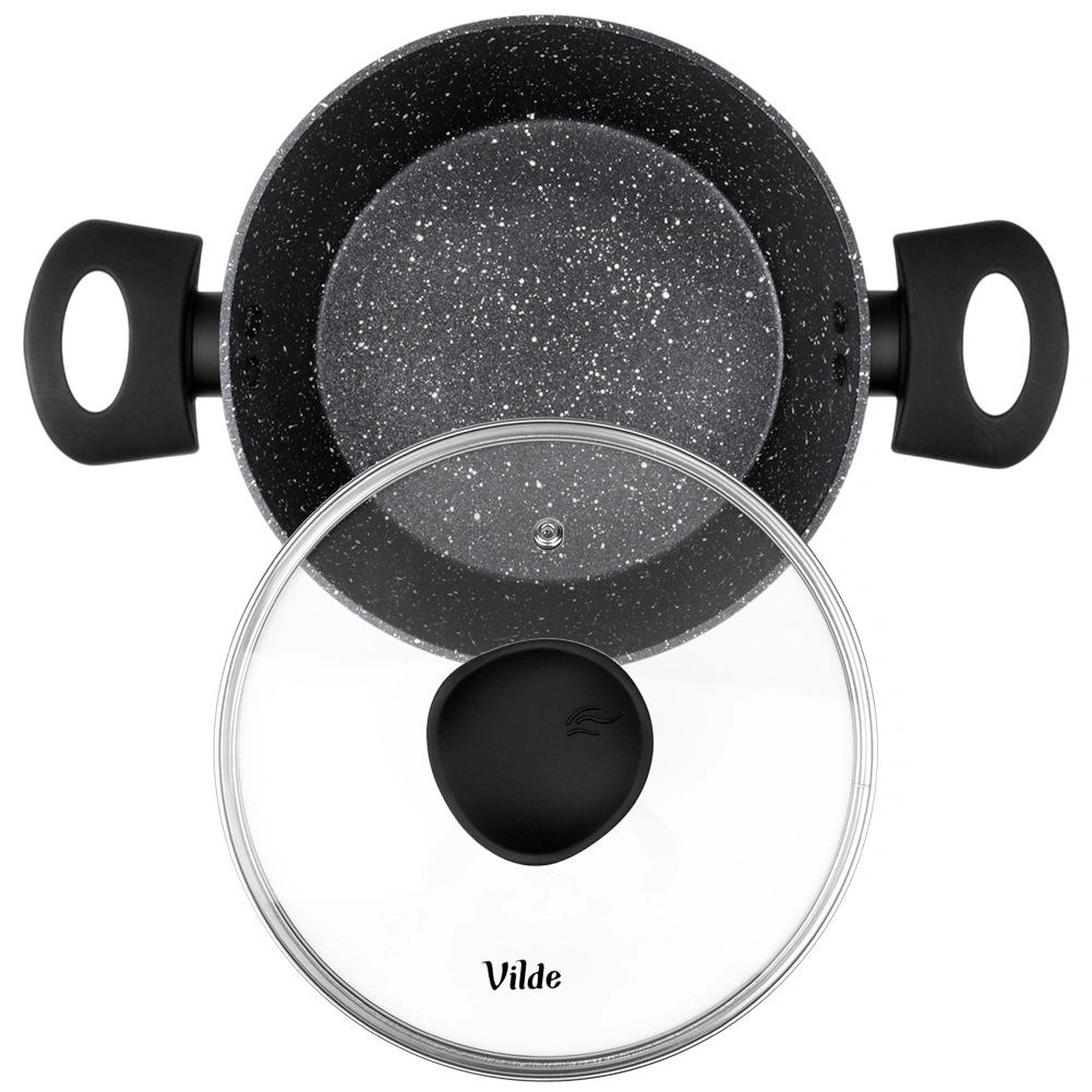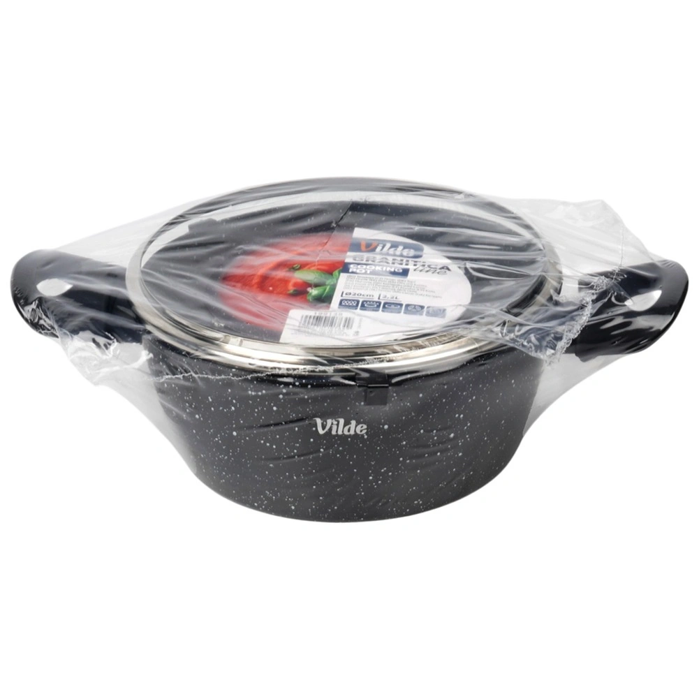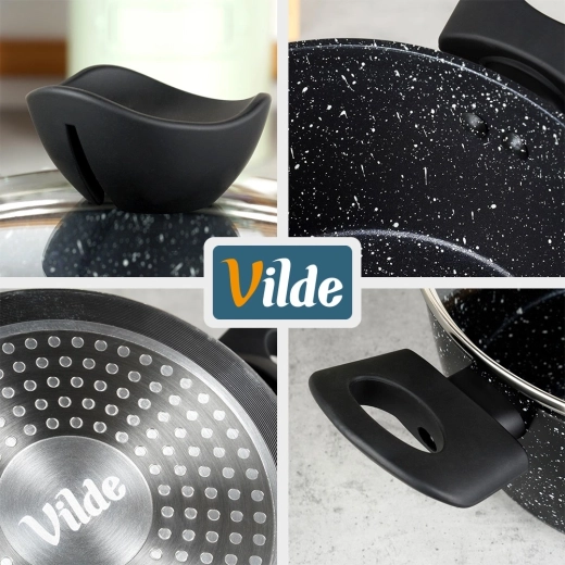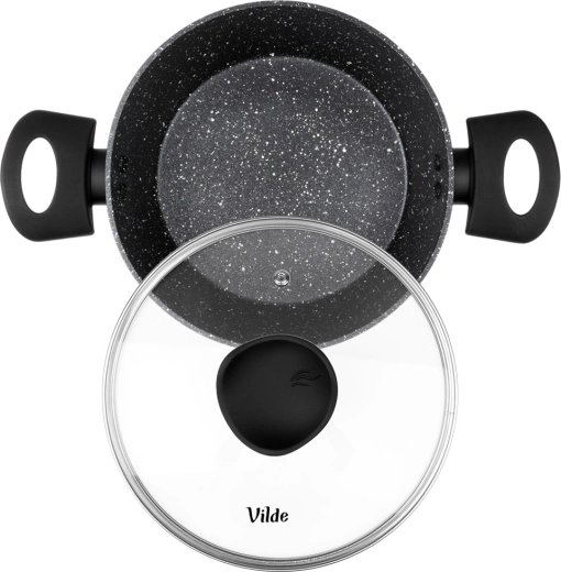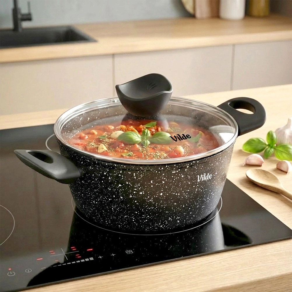 VILDE Granitica Line biedt een combinatie van duurzaamheid en comfort. De antiaanbak granietlaag voorkomt aanbakken, het glazen deksel met stoomventiel vergemakkelijkt de kookcontrole en ergonomische handgrepen met soft-touch afwerking verhogen de veiligheid en het comfort bij het hanteren.